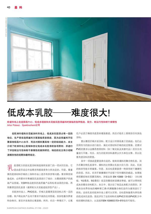 歐盟市場(chǎng)上在選擇高PVC、低成本墻面和天花板乳膠漆基料時(shí)面臨的各種挑戰(zhàn)