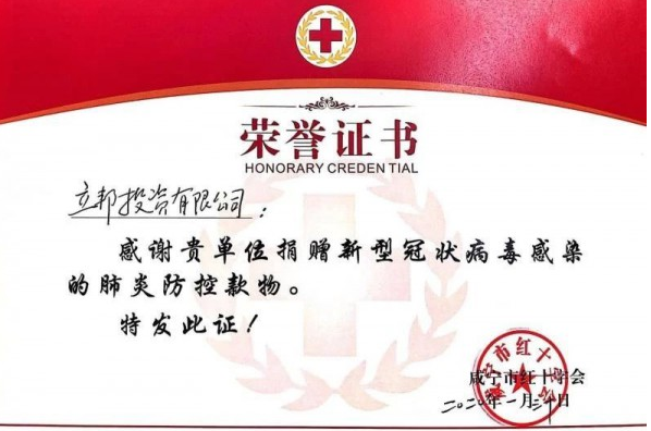 1月29日,立邦中國向湖北省咸寧市紅十字會捐款200萬元人民幣,用于支持當地抗擊新型冠狀病毒肺炎。   捐款將用于