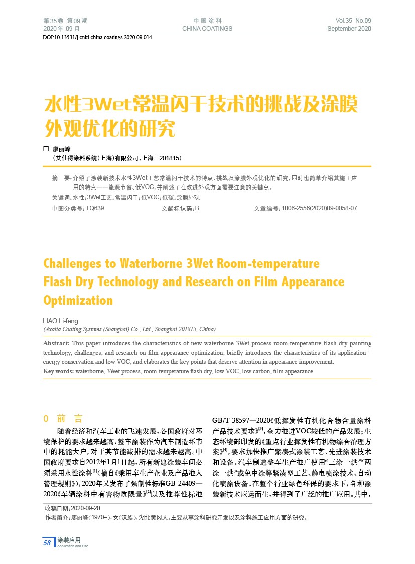 水性3Wet常溫閃干技術的挑戰及涂膜外觀優化的研究