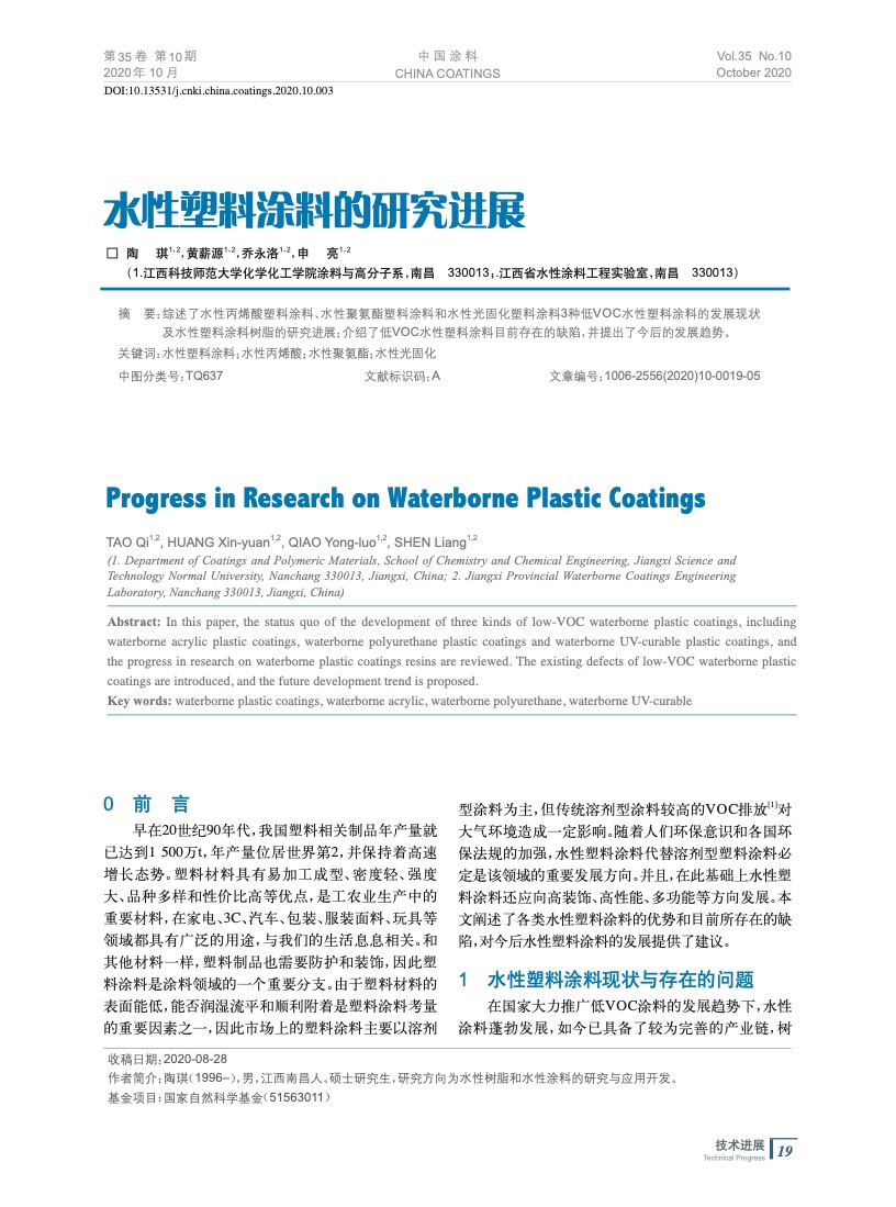 發表于2020-12-30 11:10:08| 次閱讀| 來源中國涂料| 作者陶 琪,黃薪源,喬永洛,申 亮