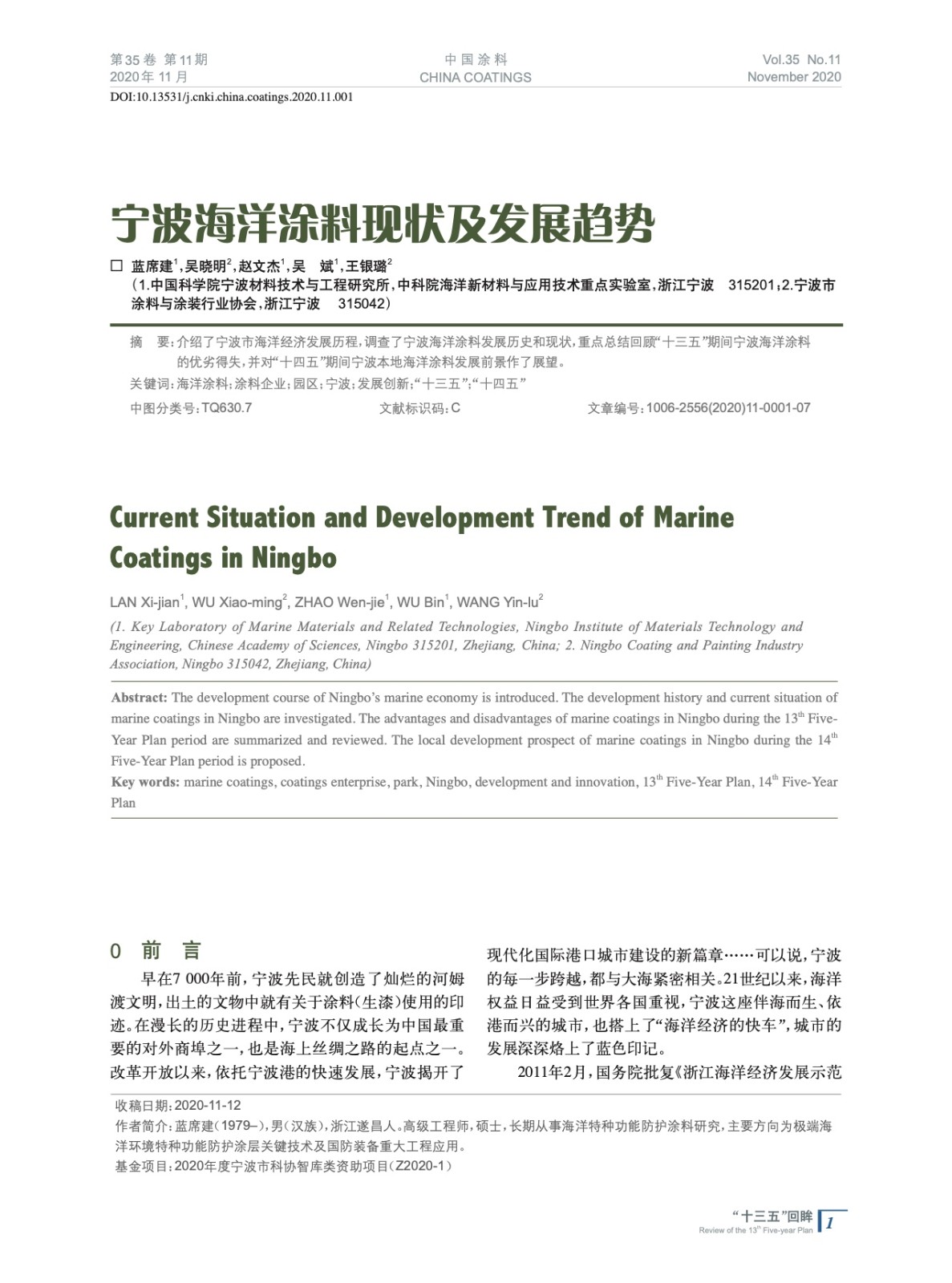 摘要:介紹了寧波市海洋經濟發展歷程,調查了寧波海洋涂料發展歷史和現狀,重點總結回顧“十三五”期間寧波海洋涂料的優劣得失,并對“十四五”期間寧波本地海洋涂料發展前景作了展望。