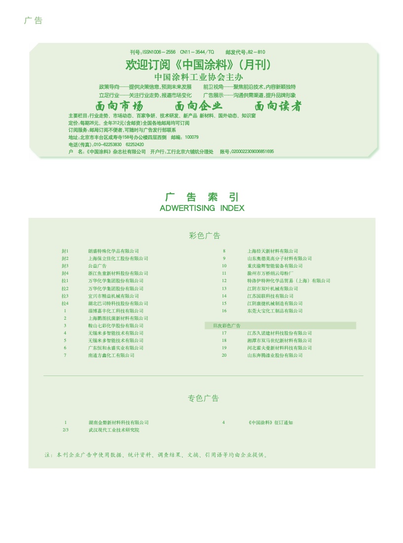 湖南金磐、武漢現(xiàn)代、《中國涂料》征訂通知
