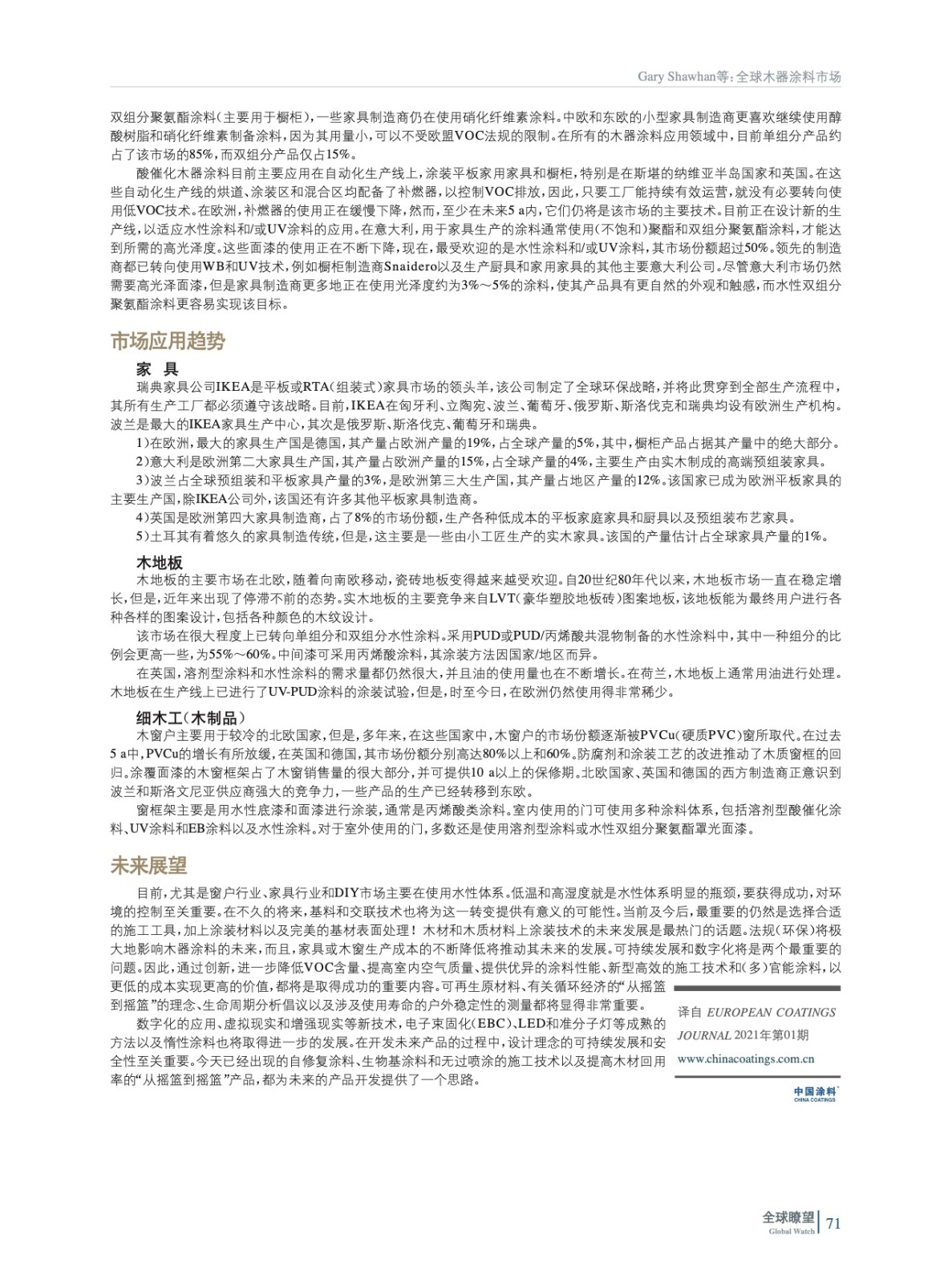 摘要:編者按:木器涂料市場在多個方面取得了持續發展。總地來說,對于那些在涂料配方、技術系列和生產制造工藝方面能成功地實現創新和不斷發展的公司來說,木器涂料市場仍然存在很多機會。