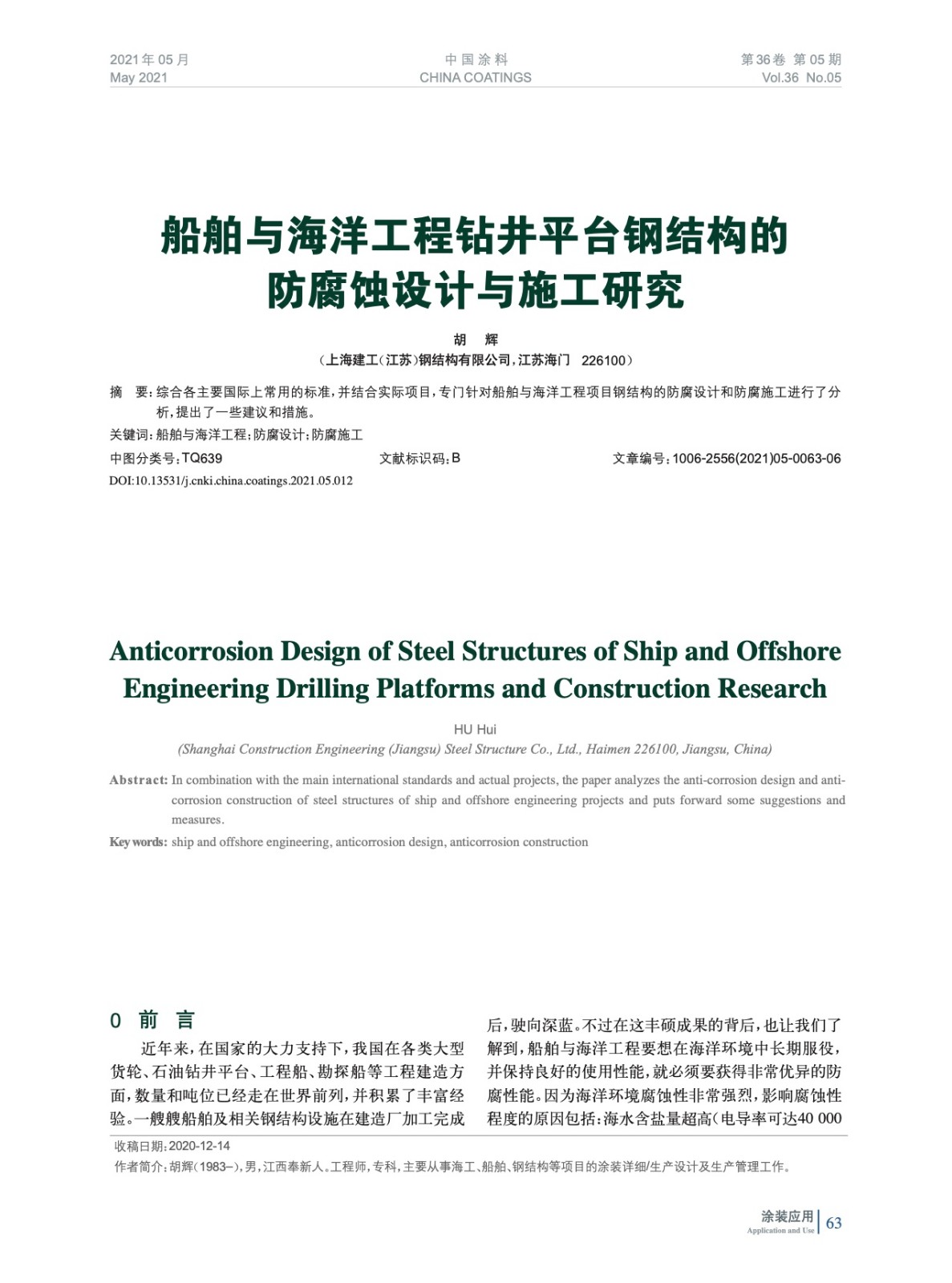 綜合各主要國際上常用的標準,并結合實際項目,專門針對船舶與海洋工程項目鋼結構的防腐設計和防腐施工進行了分析,提出了一些建議和措施。