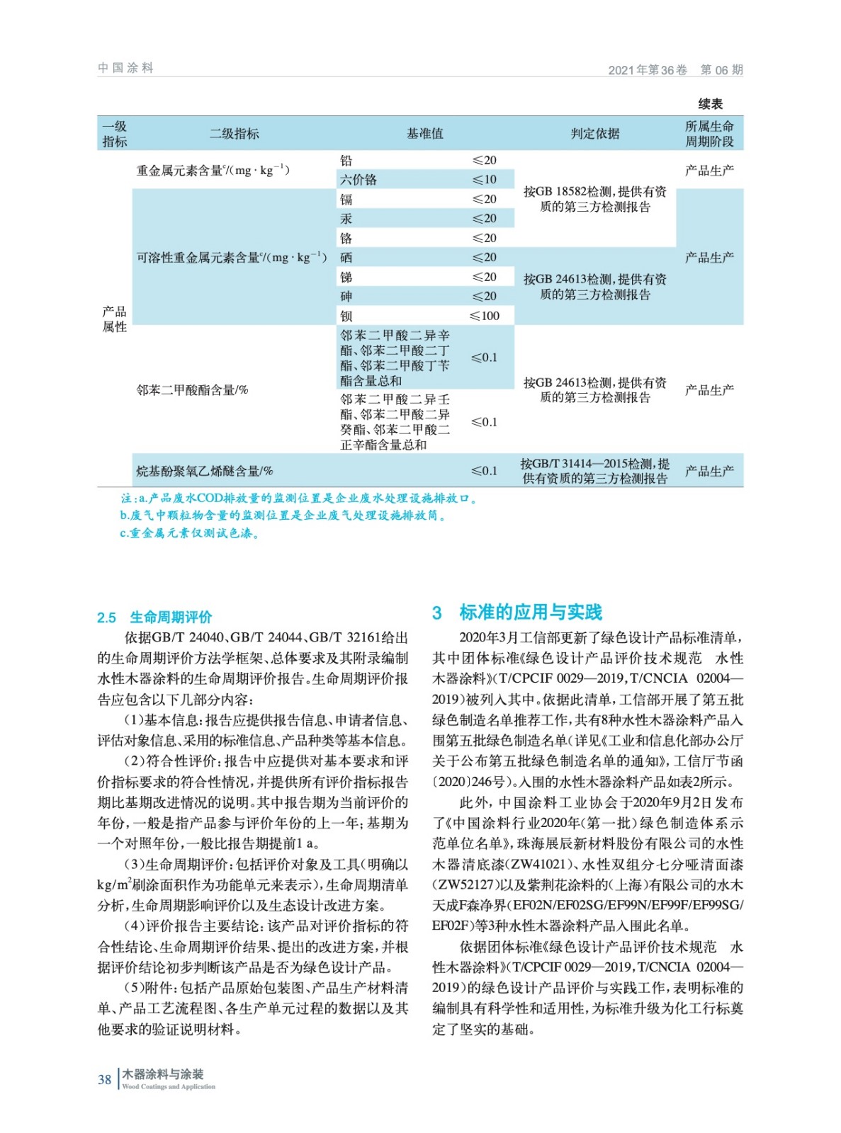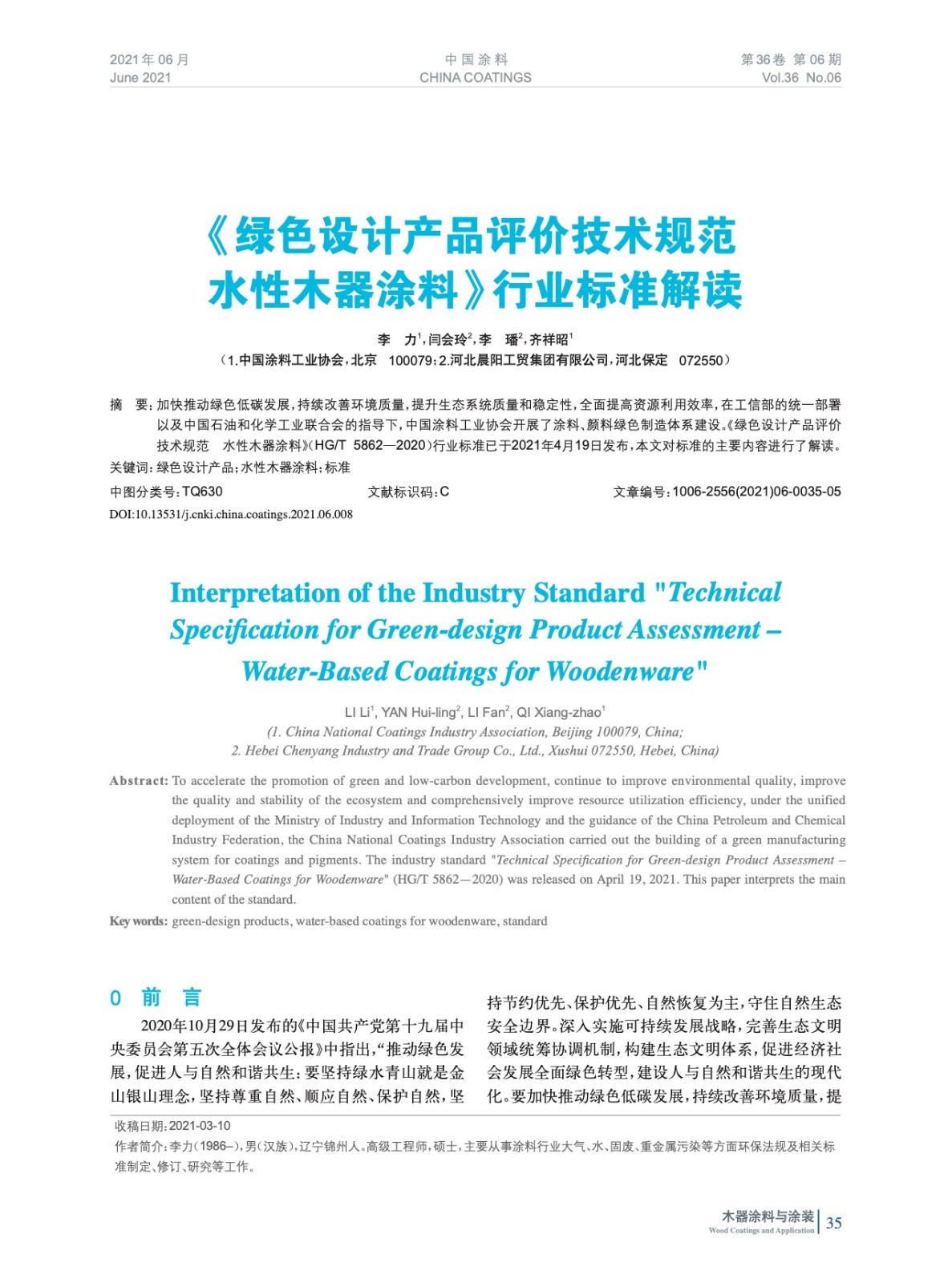 摘要:加快推動綠色低碳發展,持續改善環境質量,提升生態系統質量和穩定性,全面提高資源利用效率,在工信部的統一部署以及中國石油和化學工業聯合會的指導下,中國涂料工業協會開展了涂料、顏料綠色制造體系建設?!毒G色設計產品評價技術規范 水性木器涂料》(HG/T 5862—2020)行業標準已于2021年4月19日發布,本文對標準的主要內容進行了解讀。