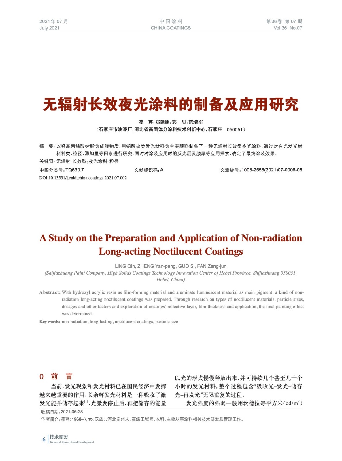 無輻射長效夜光涂料的制備及應(yīng)用研究