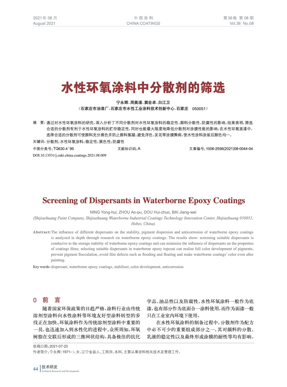 發表于2021-09-26 16:00:49| 次閱讀| 來源中國涂料| 作者寧永輝,周奧浦,竇會卓,白江衛