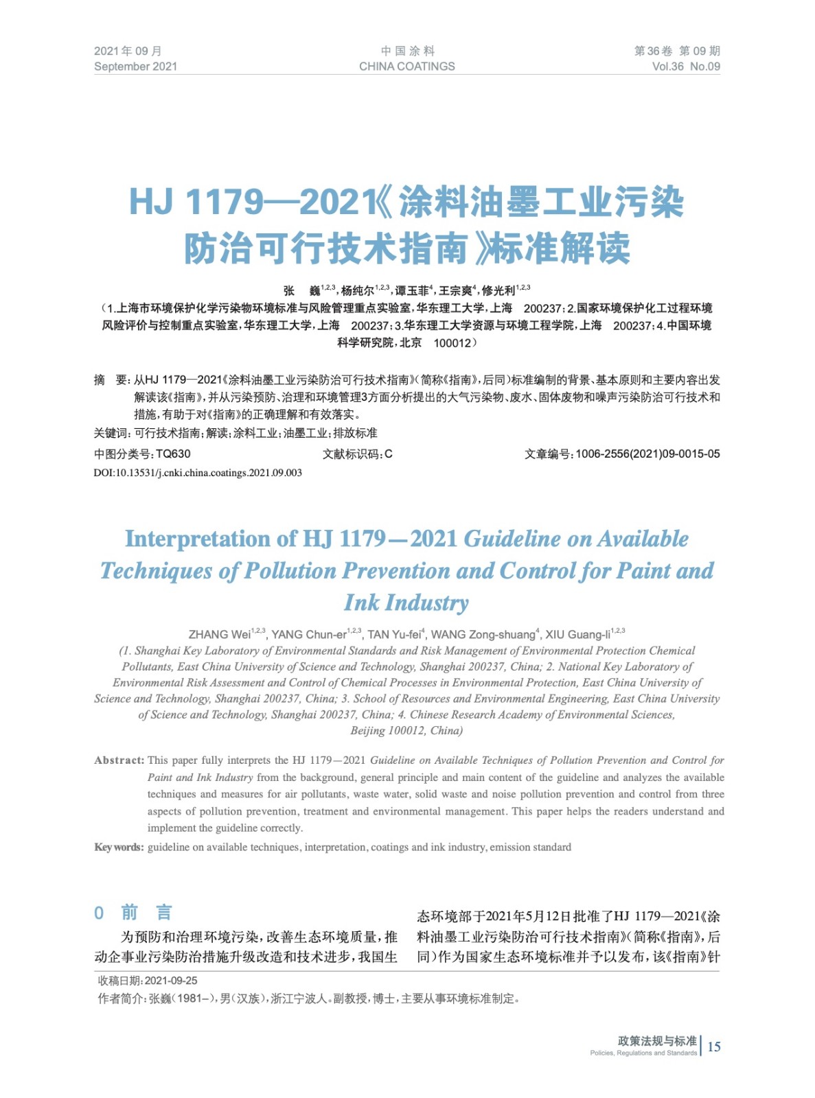 摘要:從HJ 1179—2021《涂料油墨工業污染防治可行技術指南》(簡稱《指南》,后同)標準編制的背景、基本原則和主要內容出發解讀該《指南》,并從污染預防、治理和環境管理3方面分析提出的大氣污染物、廢水、固體廢物和噪聲污染防治可行技術和措施,有助于對《指南》的正確理解和有效落實。