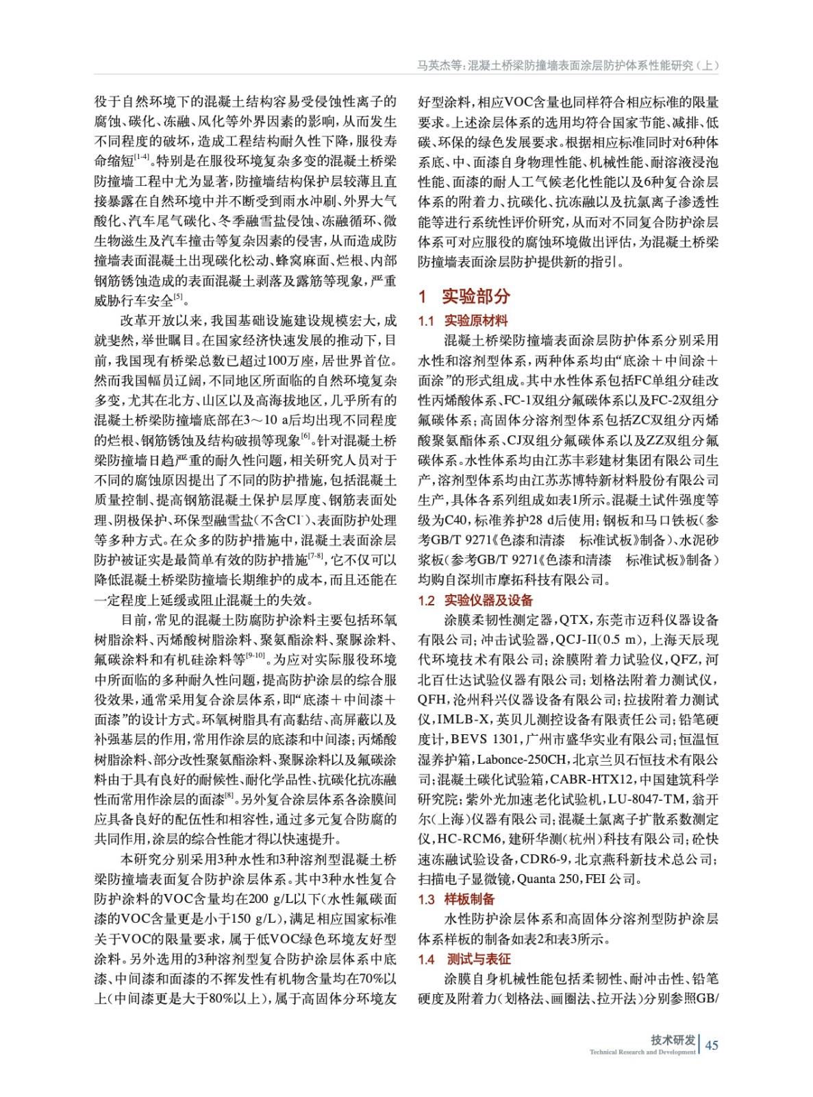 混凝土橋梁防撞墻表面涂層防護體系性能研究(上)