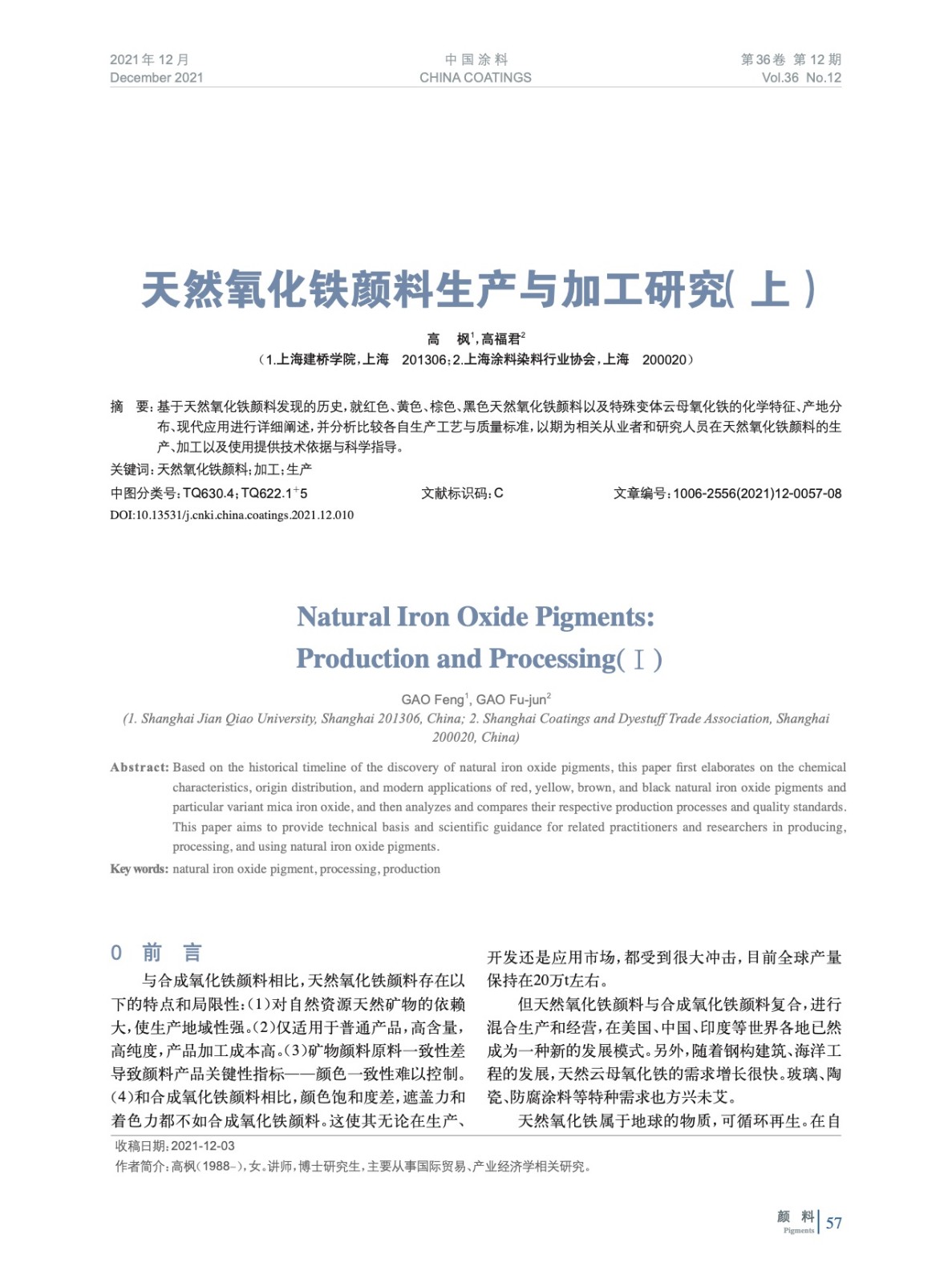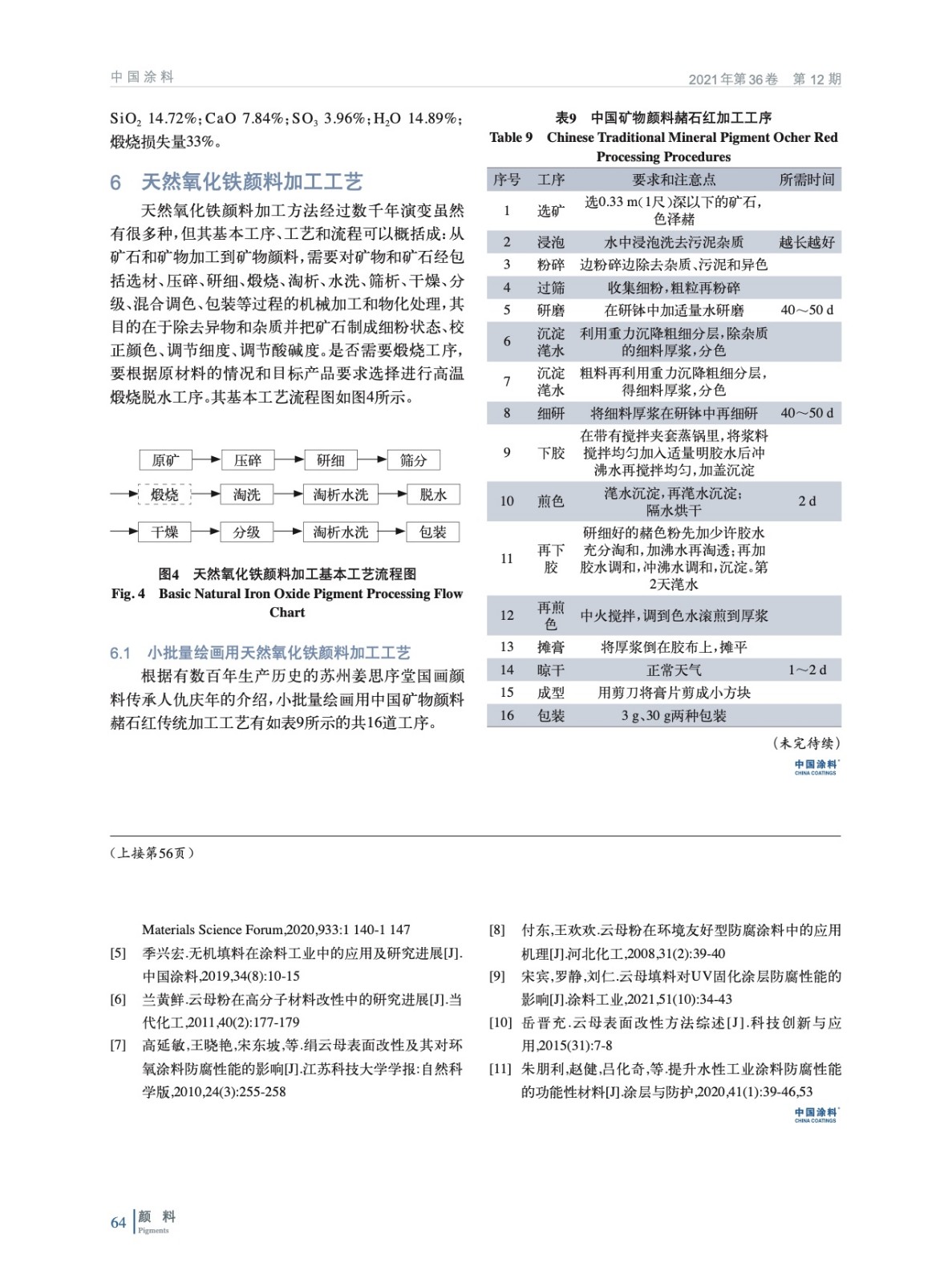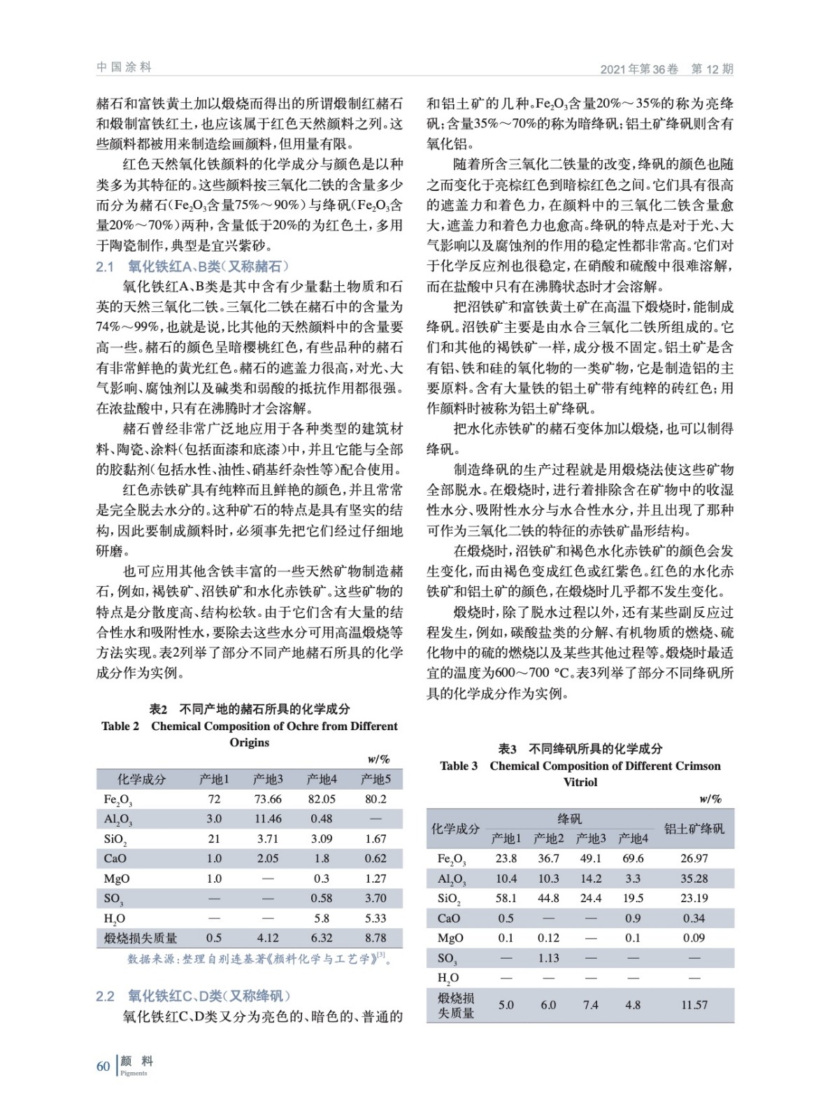 摘要:基于天然氧化鐵顏料發現的歷史,就紅色、黃色、棕色、黑色天然氧化鐵顏料以及特殊變體云母氧化鐵的化學特征、產地分布、現代應用進行詳細闡述,并分析比較各自生產工藝與質量標準,以期為相關從業者和研究人員在天然氧化鐵顏料的生產、加工以及使用提供技術依據與科學指導。