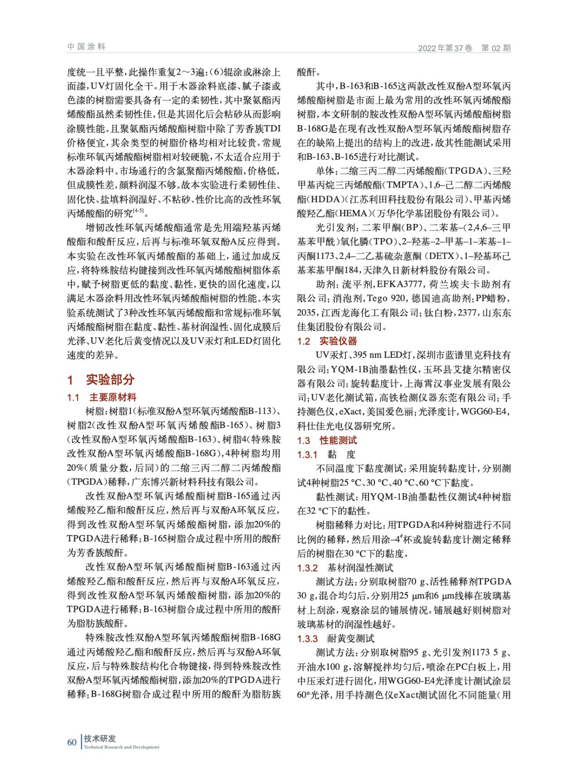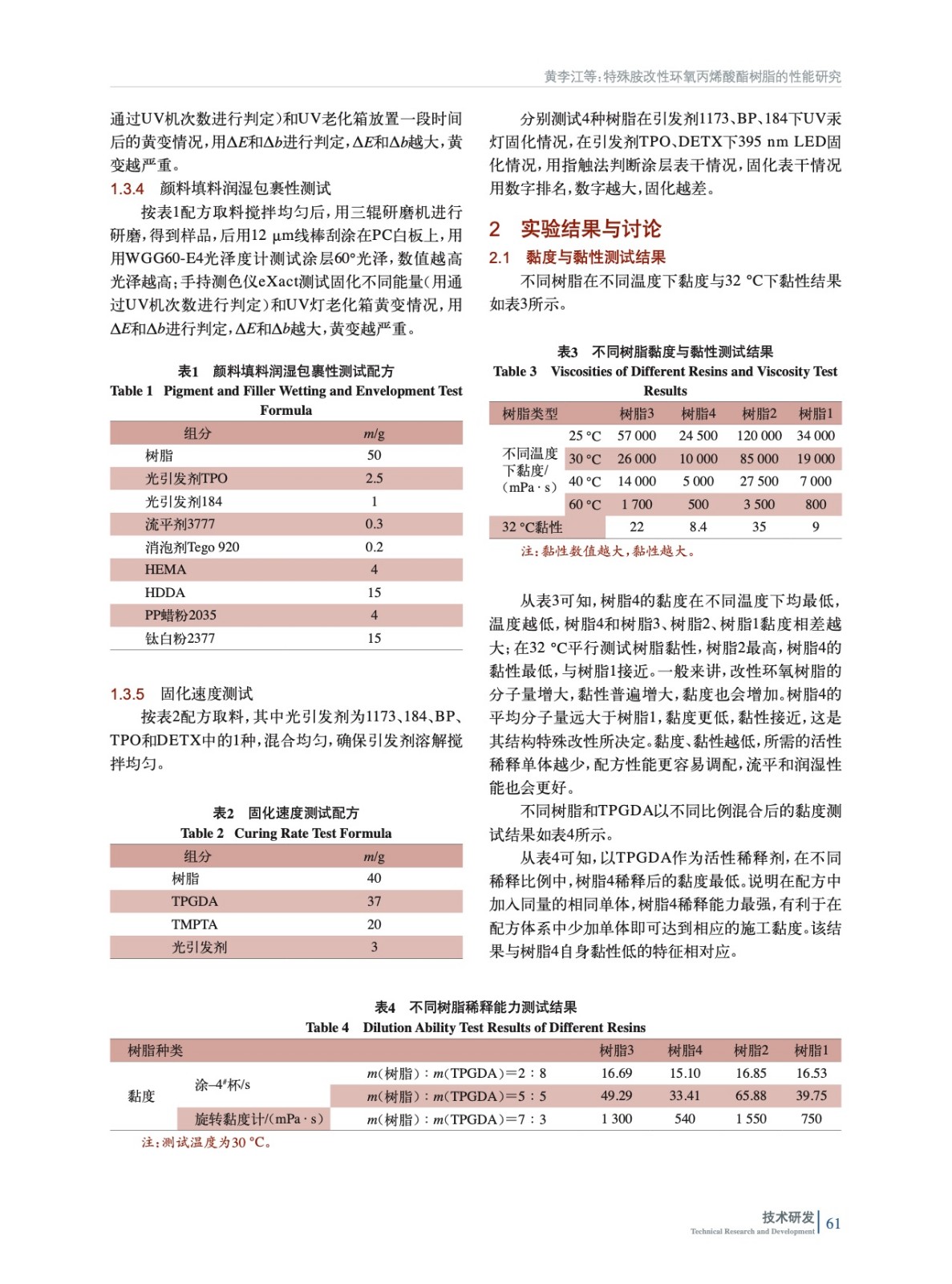 特殊胺改性環氧丙烯酸酯樹脂的性能研究