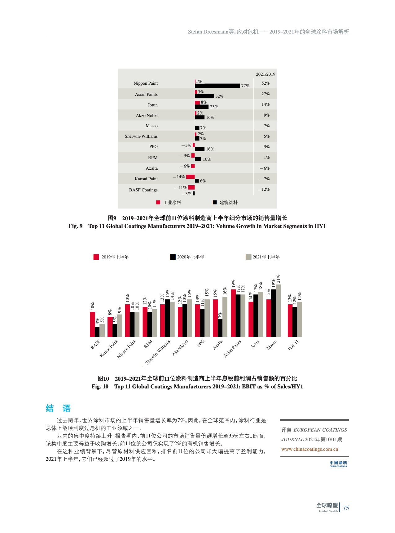 摘要:編者按:過去兩年,在涂料行業的前11位涂料制造商中,哪些公司能夠最好地應對新冠肺炎疫情危機?在涂料行業跨國公司的2021年上半年財務報告中,銷售增長令人眼花繚亂。那么,“一切都好起來了”嗎?本文將進一步深入研究這些公司的銷售額、銷售量,分析“有機銷售增長”和“收購”,以及“建筑涂料”和“工業涂料”細分市場的相對變化。最后,將快速了解這些公司的盈利能力。