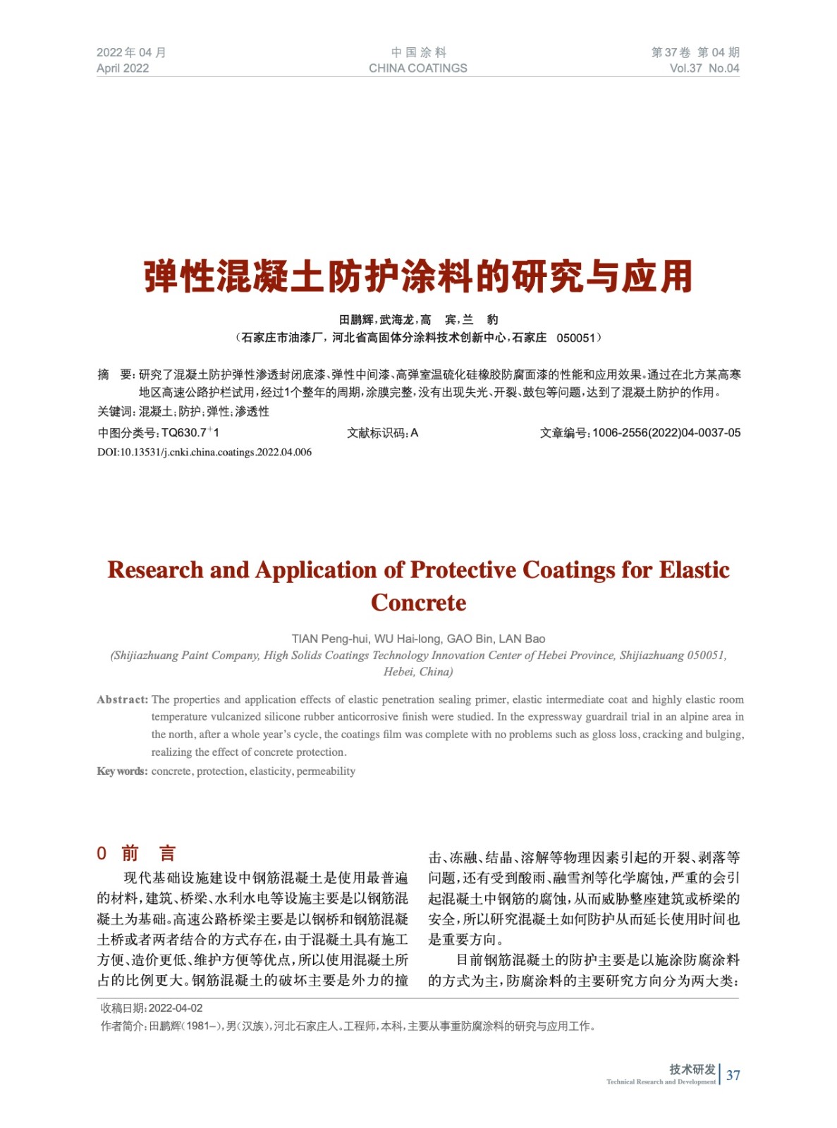 本文系作者@田鵬輝,武海龍,高 賓,蘭 豹 授權中國涂料網發表,并經中國涂料網編輯,未經允許不得轉載,如需轉載請聯系chinacoatingnet@vip.163.com
