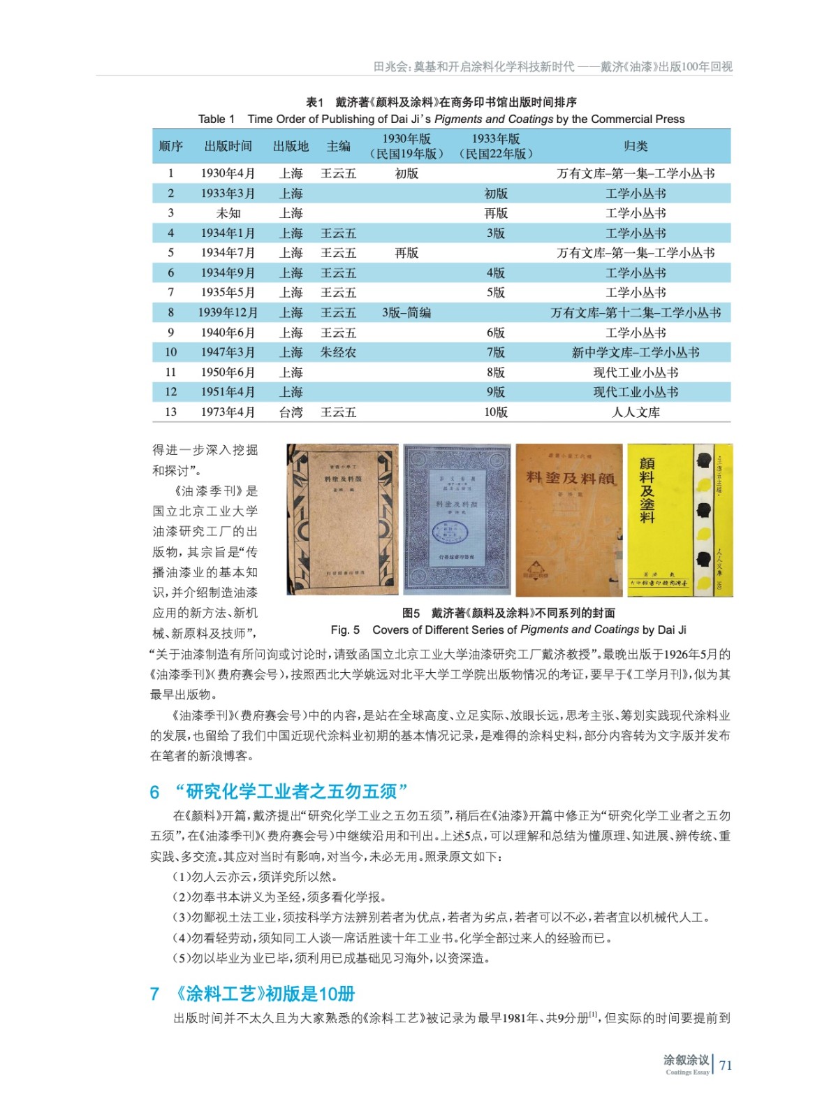 奠基和開啟涂料化學科技新時代——戴濟《油漆》出版100年回視