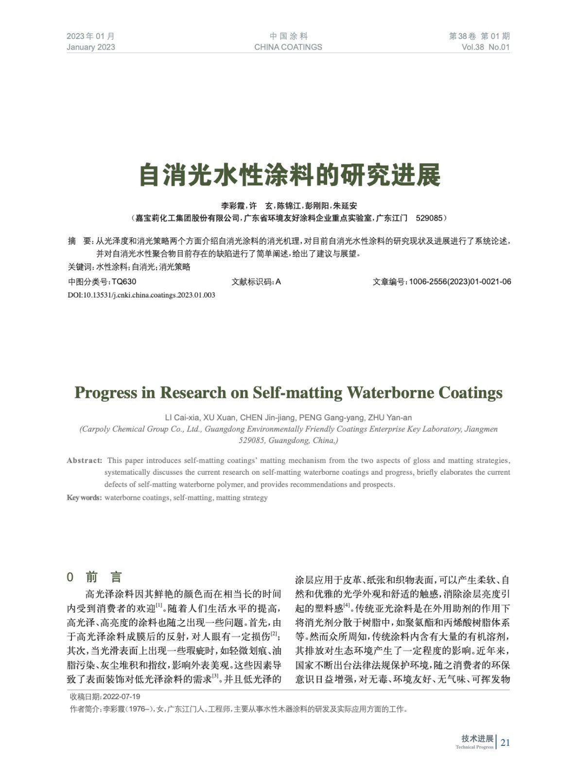 首頁 > 《中國涂料》雜志 > 刊載文章