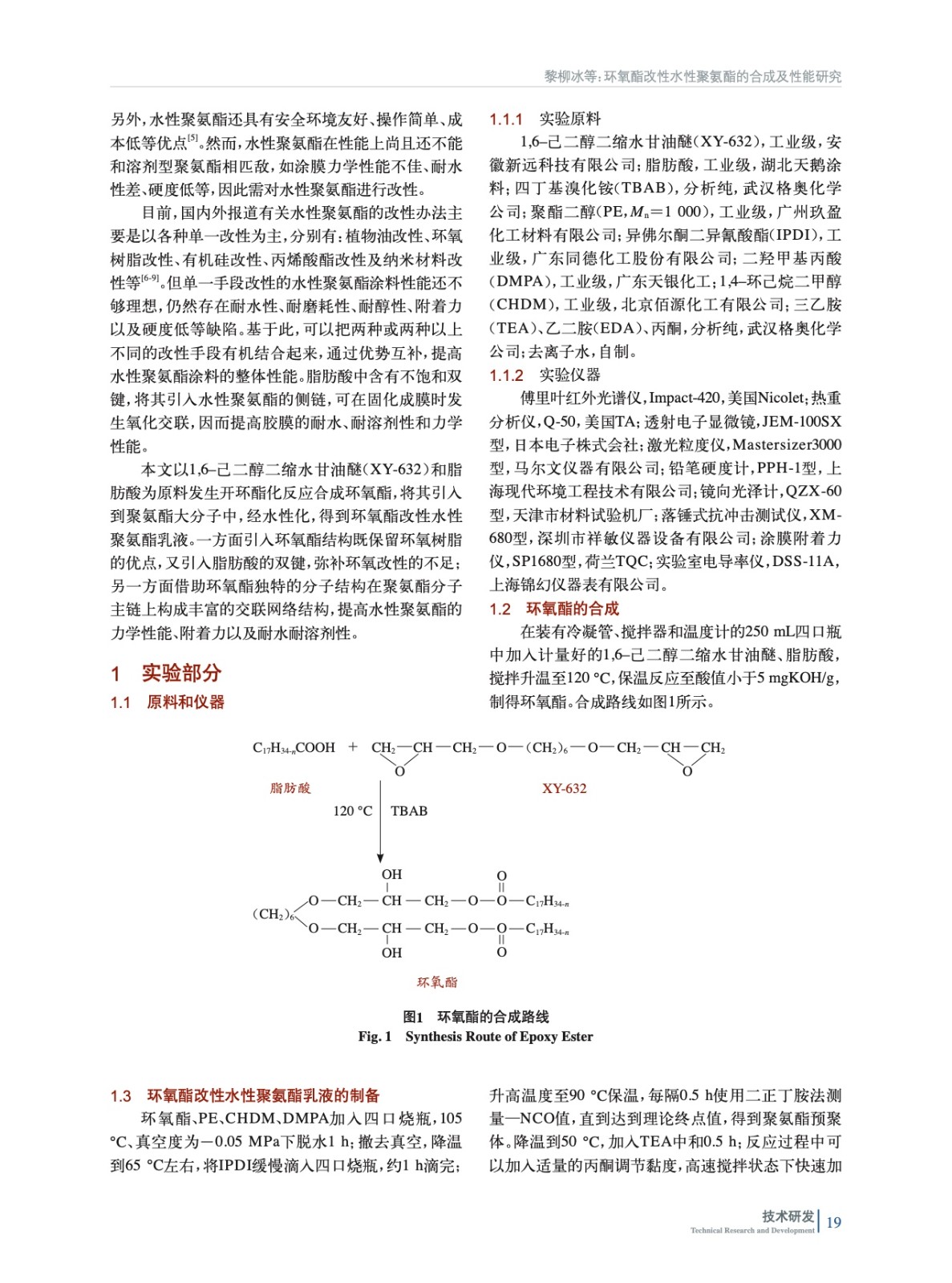 環氧酯改性水性聚氨酯的合成及性能研究