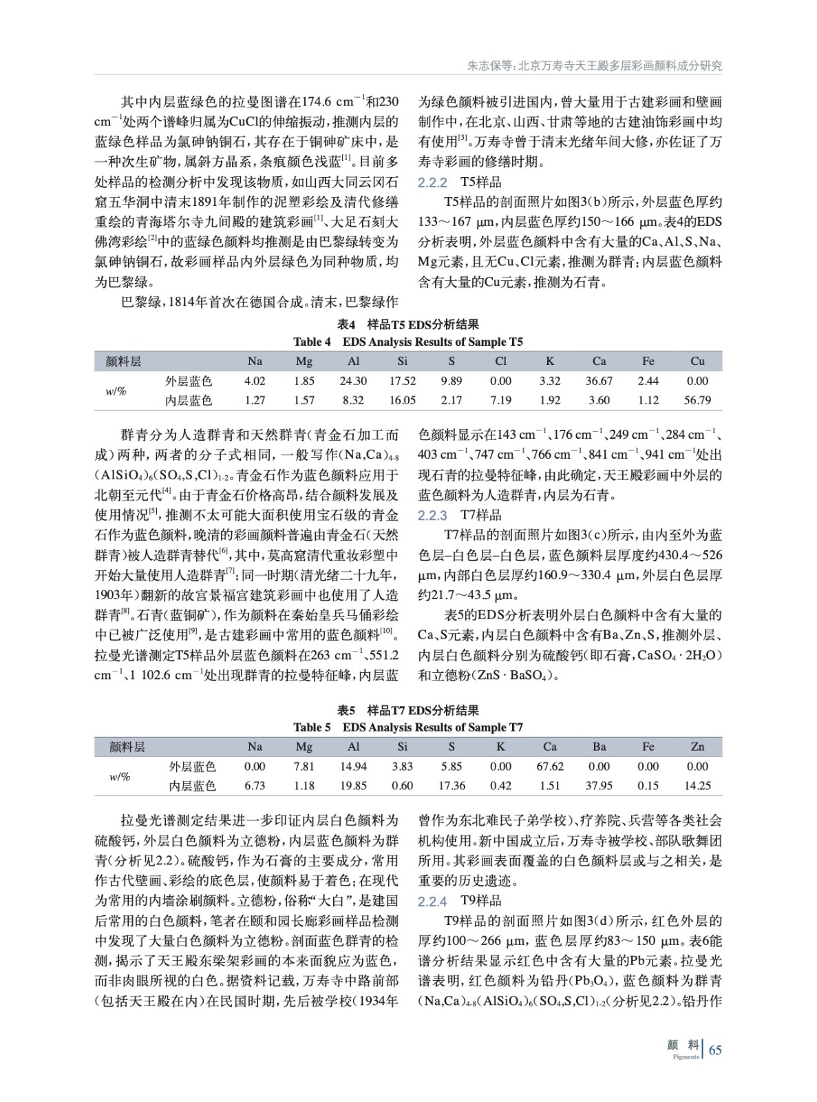 北京萬壽寺天王殿多層彩畫顏料成分研究