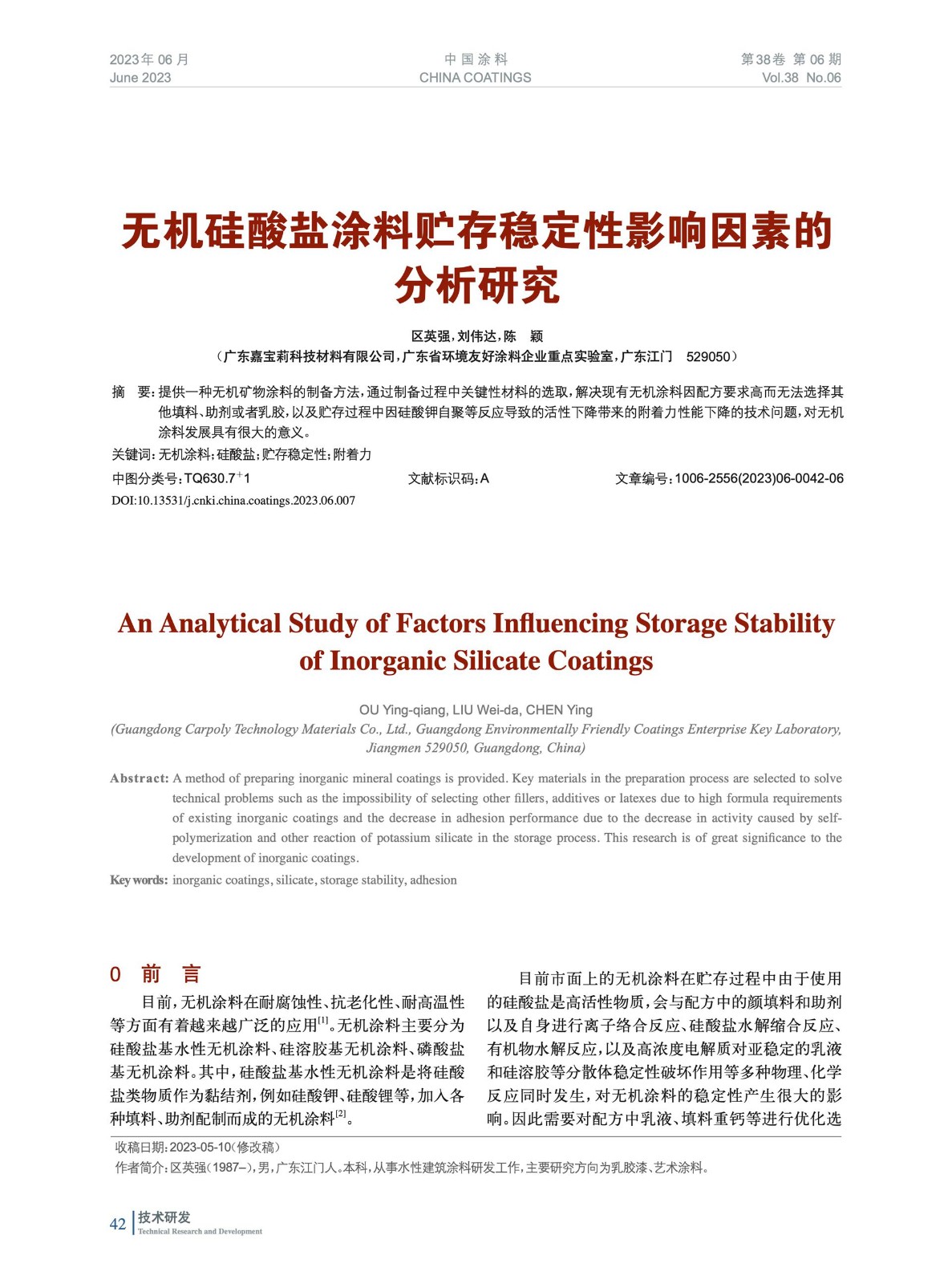 本文系作者@區英強,劉偉達,陳 穎 授權中國涂料網發表,并經中國涂料網編輯,未經允許不得轉載,如需轉載請聯系chinacoatingnet@vip.163.com