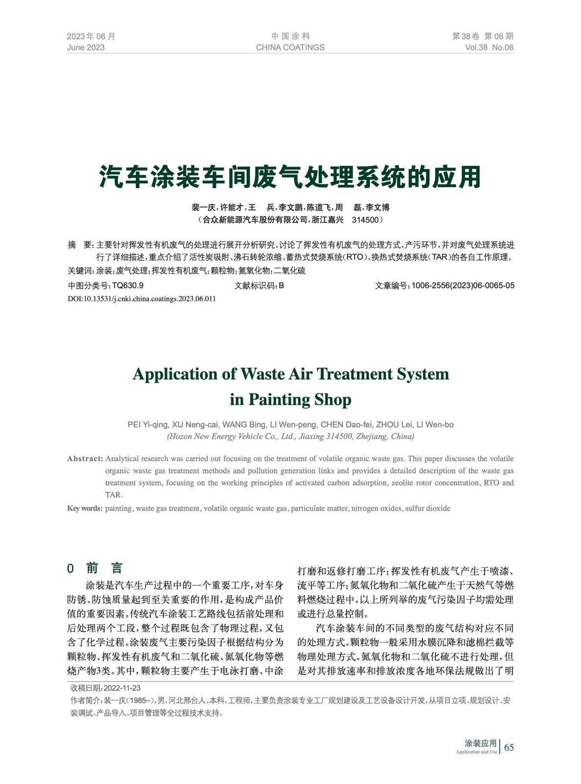 主要針對揮發性有機廢氣的處理進行展開分析研究。討論了揮發性有機廢氣的處理方式、產污環節,并對廢氣處理系統進行了詳細描述,重點介紹了活性炭吸附、沸石轉輪濃縮、蓄熱式焚燒系統(RTO)、換熱式焚燒系統(TAR)的各自工作原理。