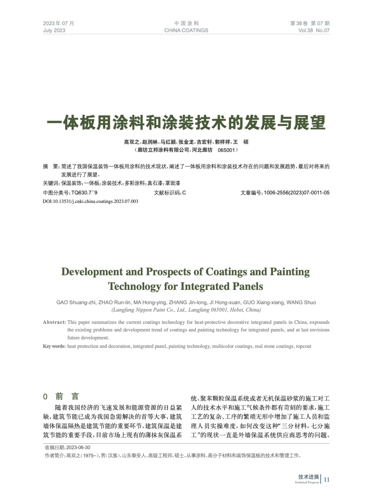 本文系作者@高雙之,趙潤林,馬紅穎,張金龍,吉宏軒,郭祥祥,王 碩 授權中國涂料網(wǎng)發(fā)表,并經(jīng)中國涂料網(wǎng)編輯,未經(jīng)允許不得轉載,如需轉載請聯(lián)系chinacoatingnet@vip.163.com
