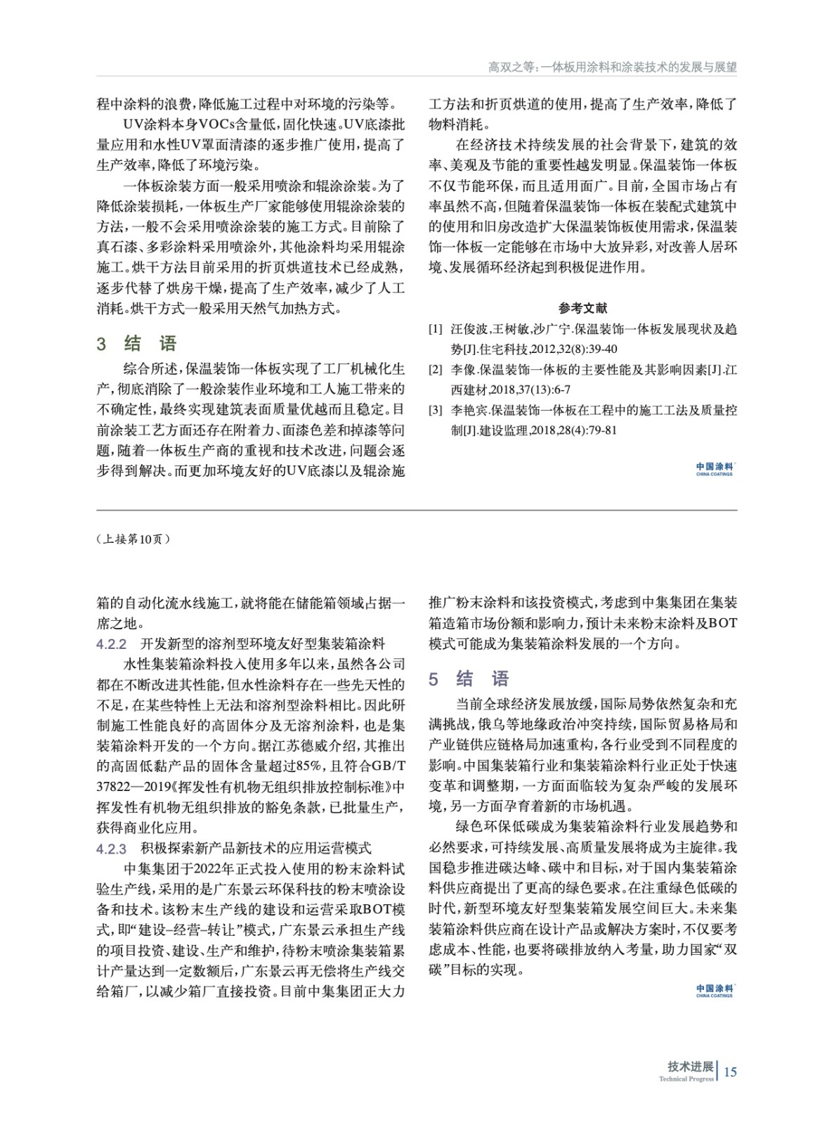 一體板用涂料和涂裝技術的發(fā)展與展望