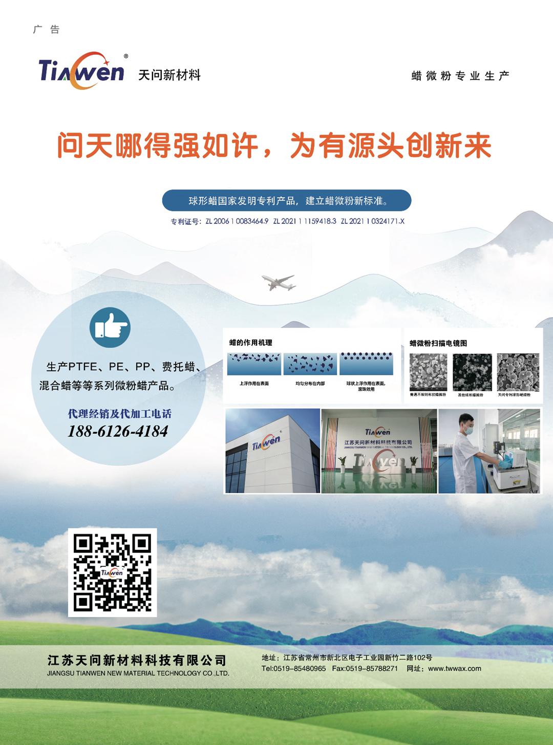 摘要:封1:江蘇布威倫環保科技有限公司;封2:上海諾輝智能科技有限公司;封3:江蘇天問新材料科技有限公司;封4:朗盛特殊化學品有限公司