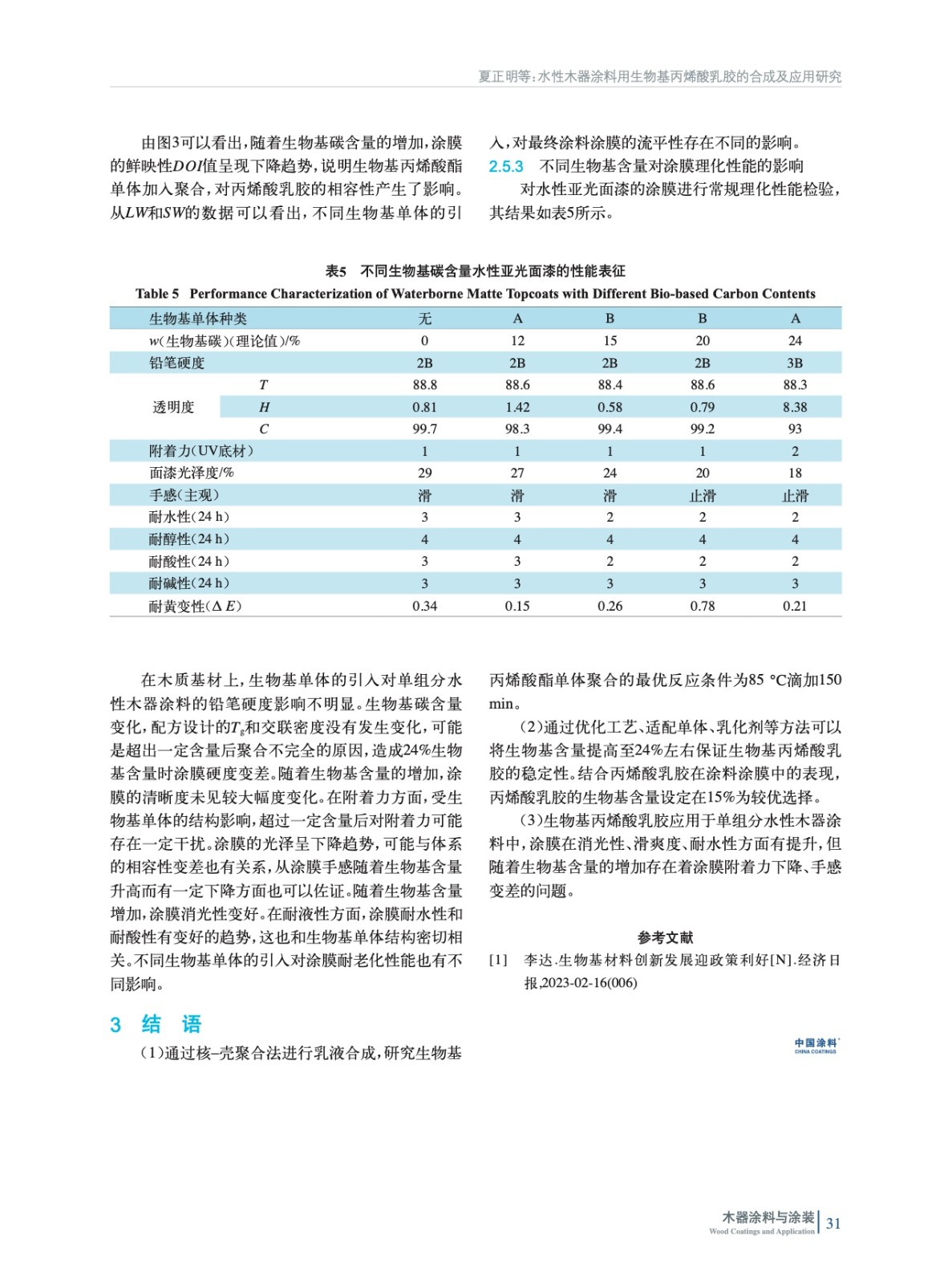 水性木器涂料用生物基丙烯酸乳膠的合成及應用研究