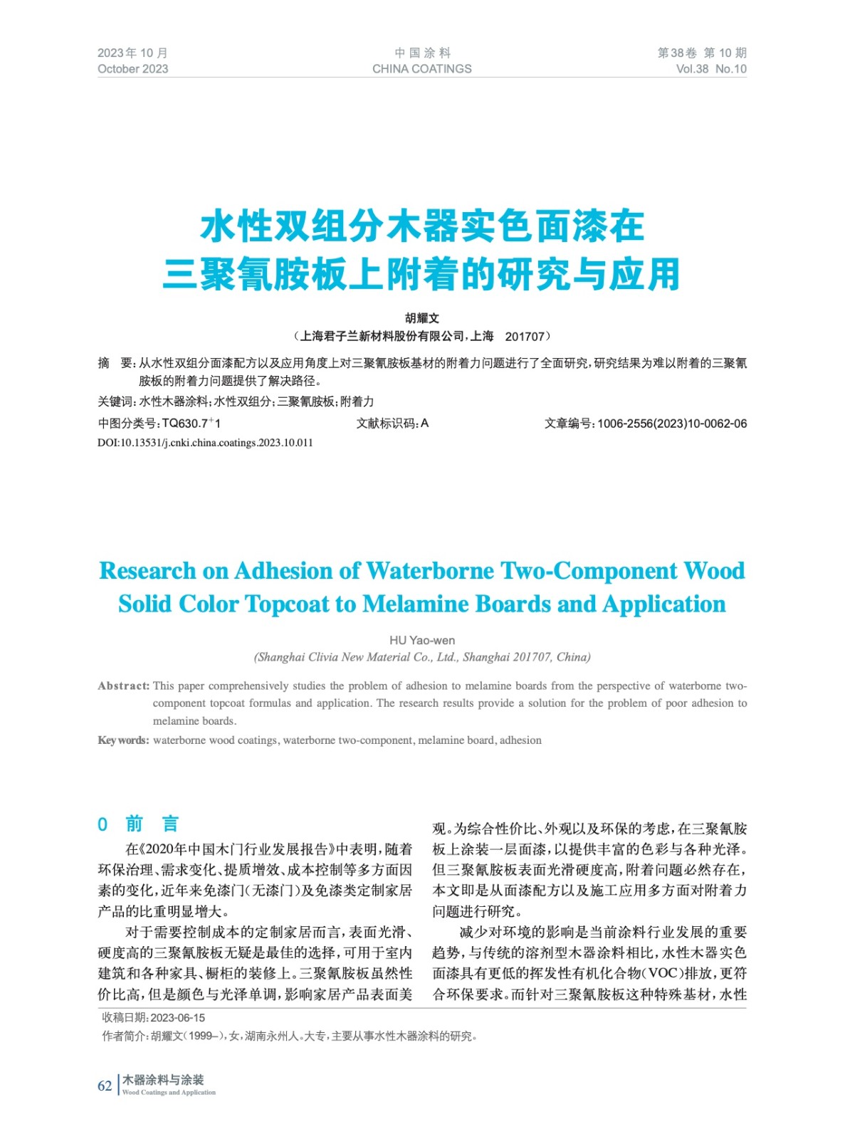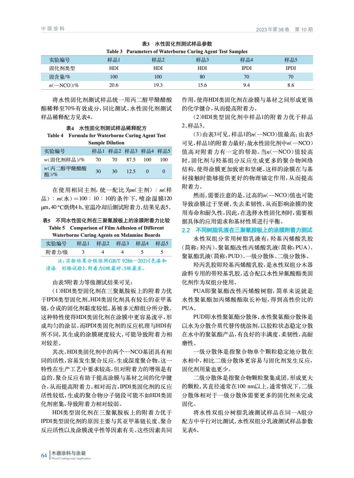 水性雙組分木器實色面漆在三聚氰胺板上附著的研究與應用