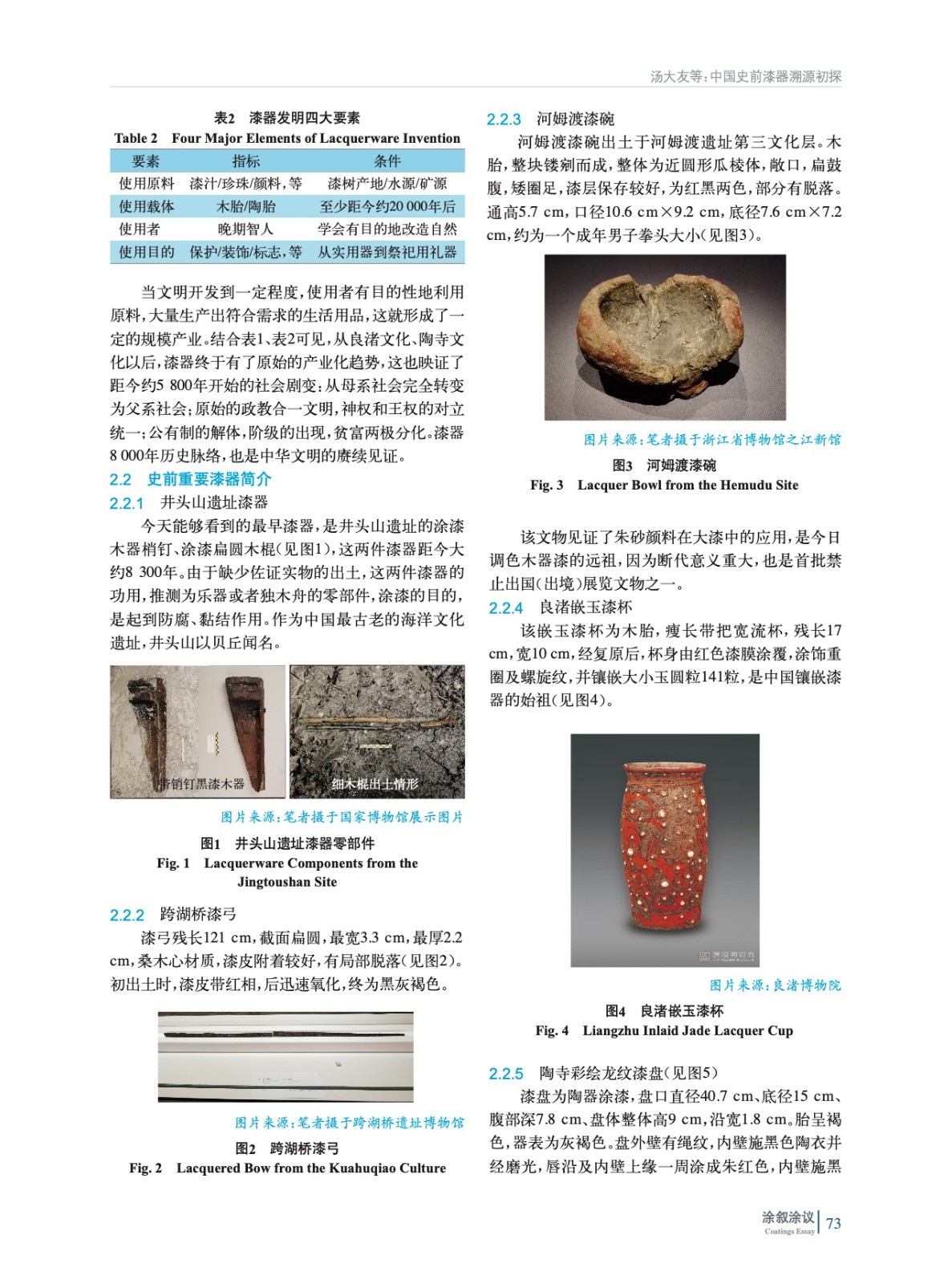 摘要:展示了史前漆器的出土概況,提出了漆器發明的四大要素,對史前重要漆器文物進行簡介,分析論證史前用漆文獻材料,最后對史前漆器做了綜述總結。