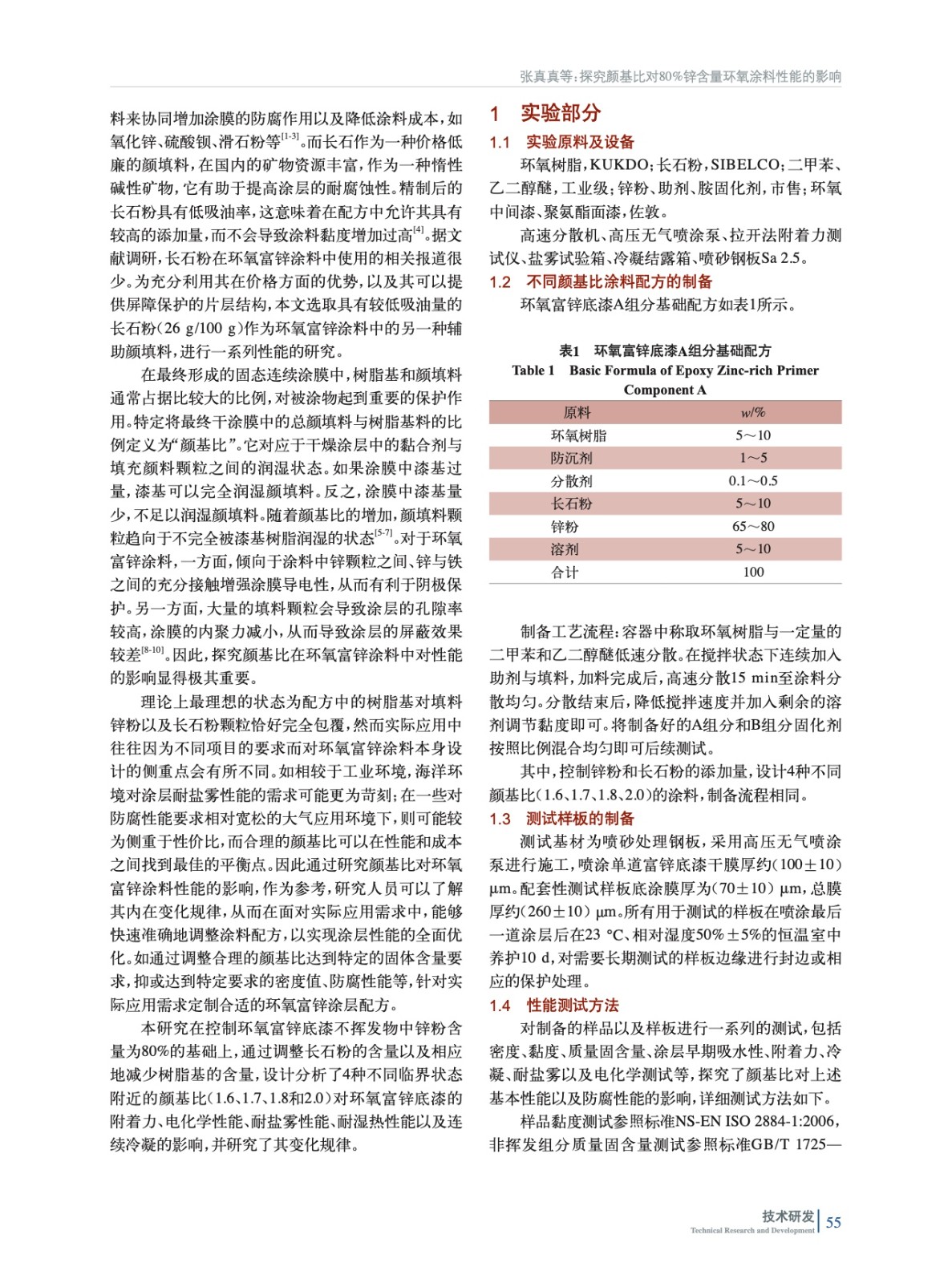探究顏基比對(duì)80%鋅含量環(huán)氧涂料性能的影響