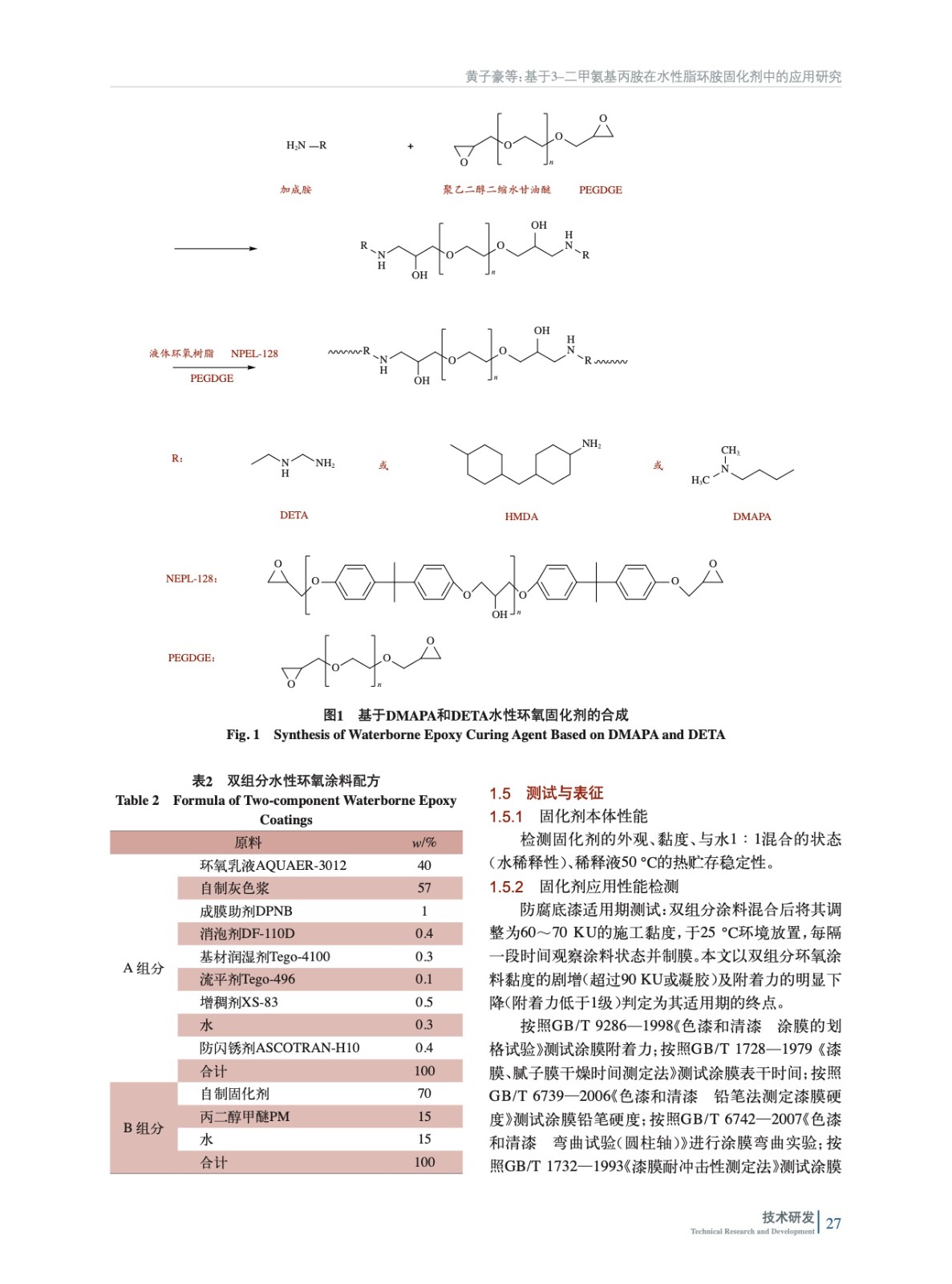 基于3–二甲氨基丙胺在水性脂環(huán)胺固化劑中的應(yīng)用研究