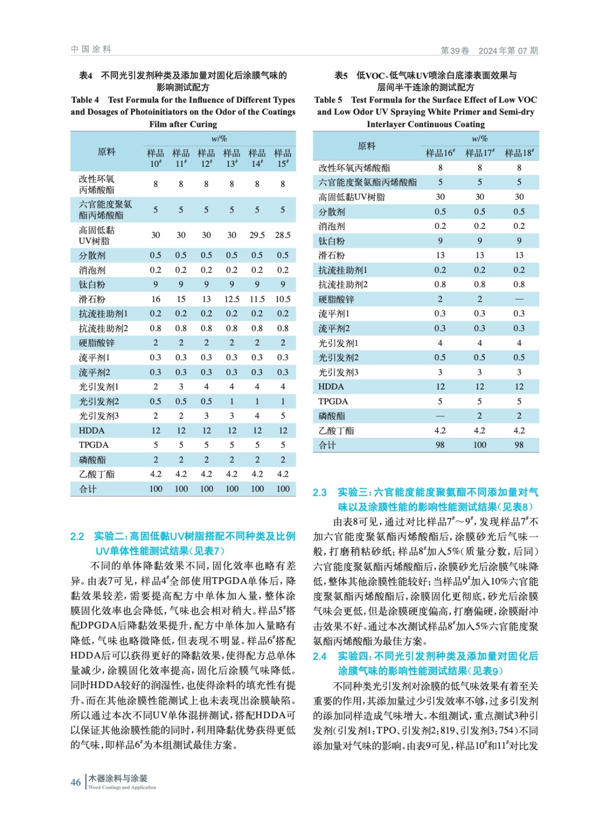 摘要:主要通過使用高固低黏的UV樹脂搭配UV單體減少有機(jī)溶劑添加量,以及添加一定比例的高官能度聚氨酯和深層光引發(fā)劑來實(shí)現(xiàn)深層固化的交聯(lián)密度,通過對光引發(fā)劑的復(fù)配與不同比例的添加,來進(jìn)一步降低固化后氣味。同時(shí)對層間連涂測試以及在配方設(shè)計(jì)時(shí)遇到的一些其他需要注意事項(xiàng)做了介紹。