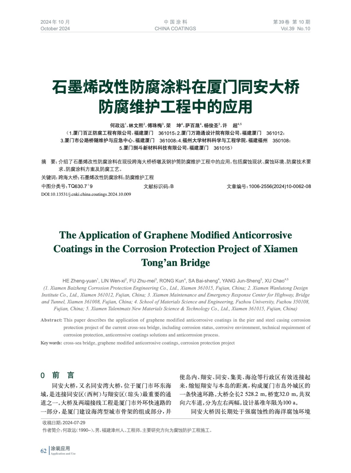 石墨烯改性防腐涂料在廈門同安大橋防腐維護(hù)工程中的應(yīng)用