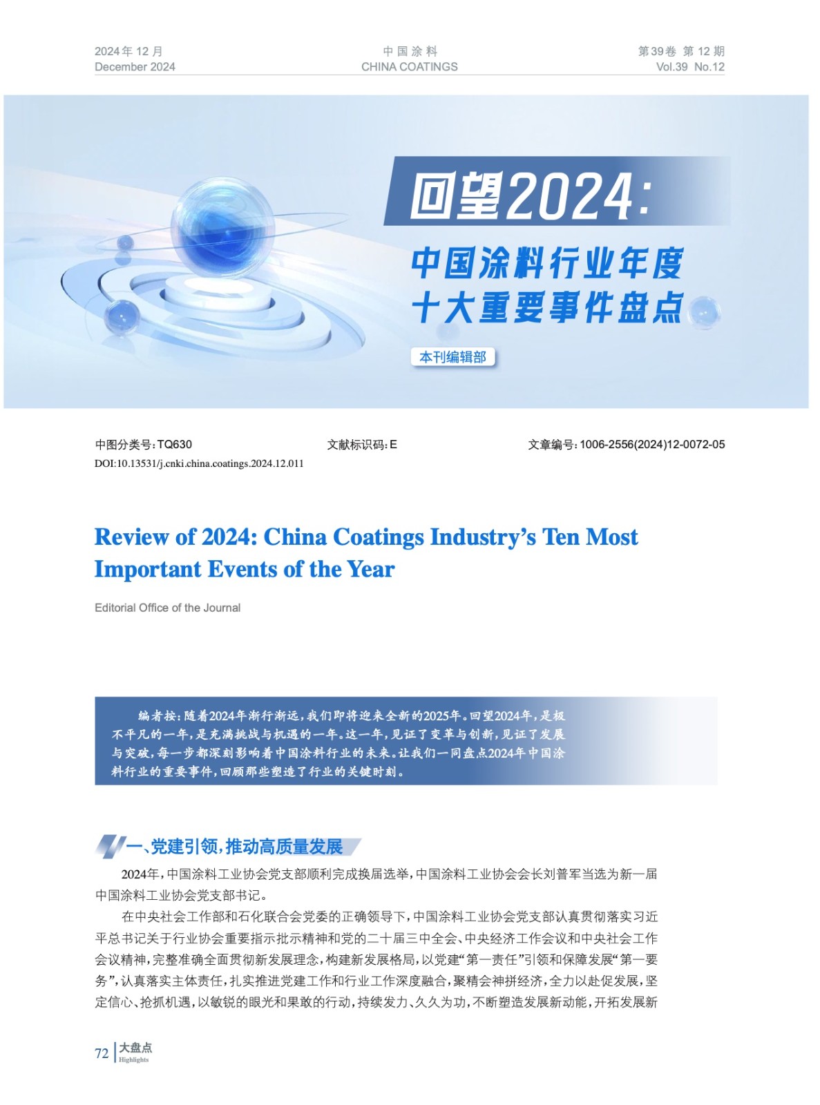 隨著2024年漸行漸遠,我們即將迎來全新的2025年。回望2024年,是極不平凡的一年,是充滿挑戰與機遇的一年。這一年,見證了變革與創新,見證了發展與突破,每一步都深刻影響著中國涂料行業的未來。讓我們一同盤點2024年中國涂料行業的重要事件,回顧那些塑造了行業的關鍵時刻。