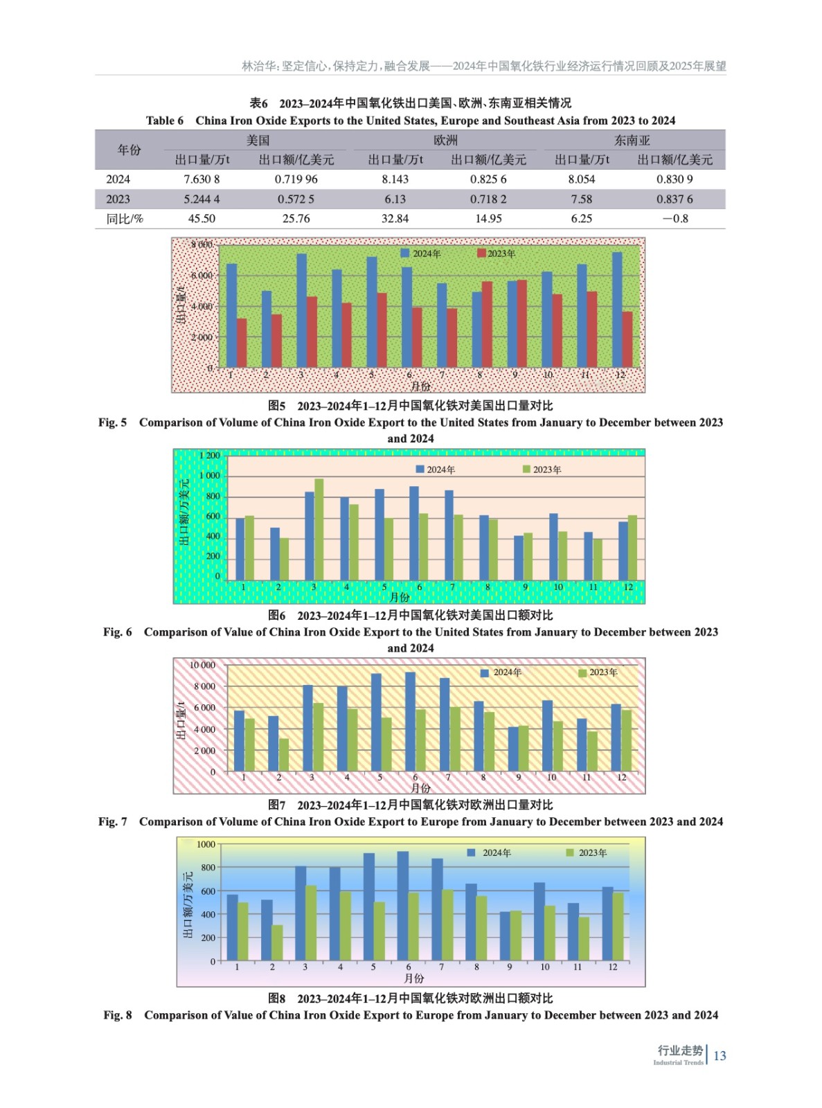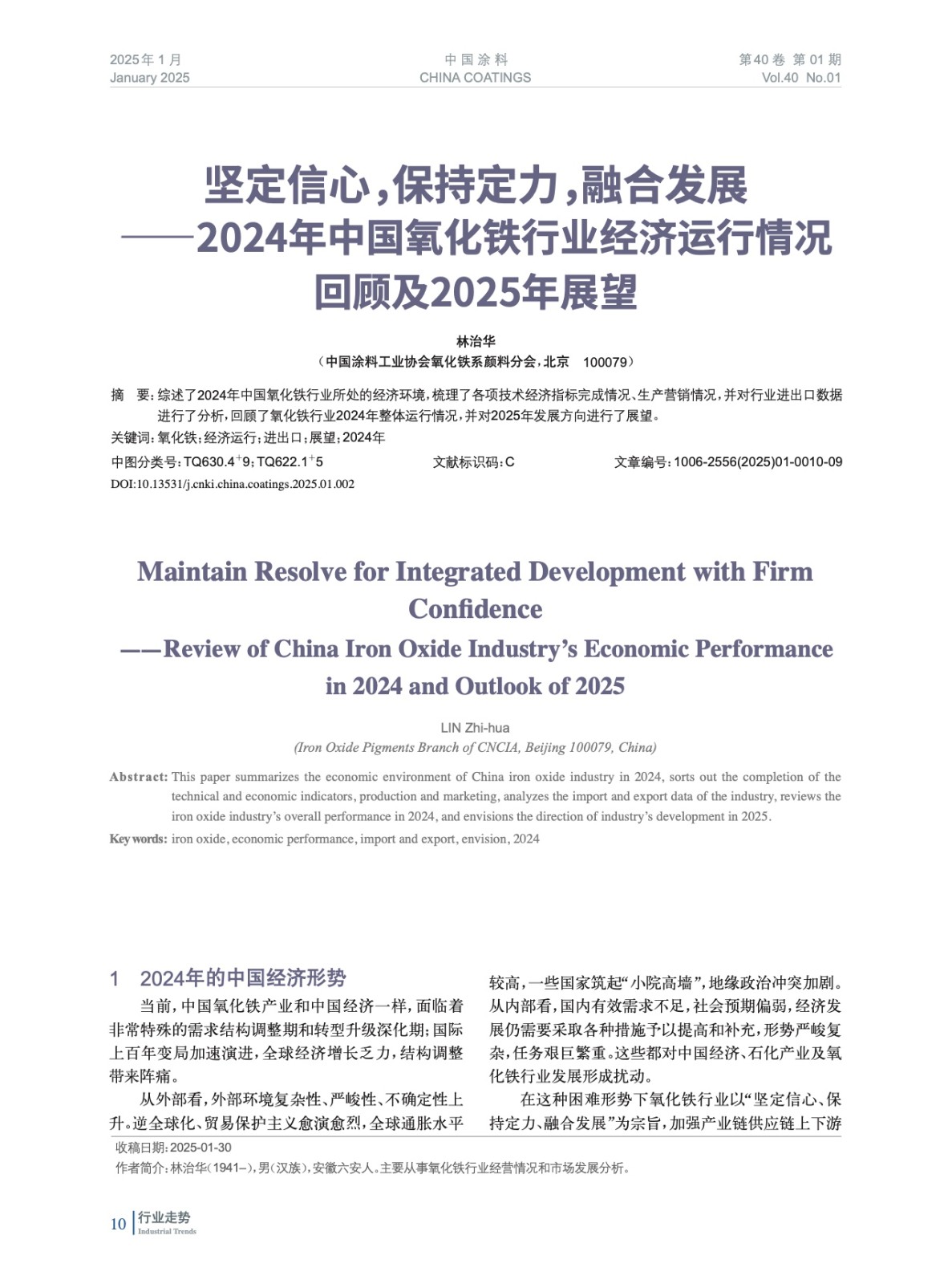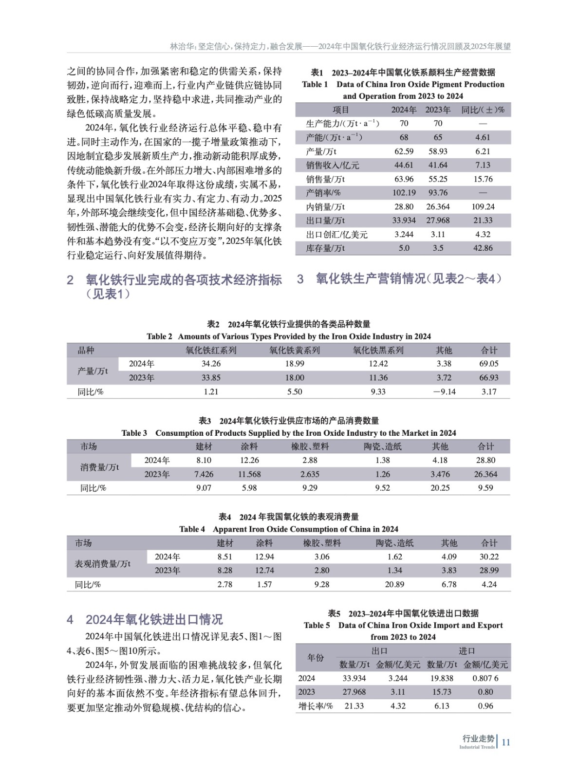 綜述了2024年中國氧化鐵行業所處的經濟環境,梳理了各項技術經濟指標完成情況、生產營銷情況,并對行業進出口數據進行了分析,回顧了氧化鐵行業2024年整體運行情況,并對2025年發展方向進行了展望。