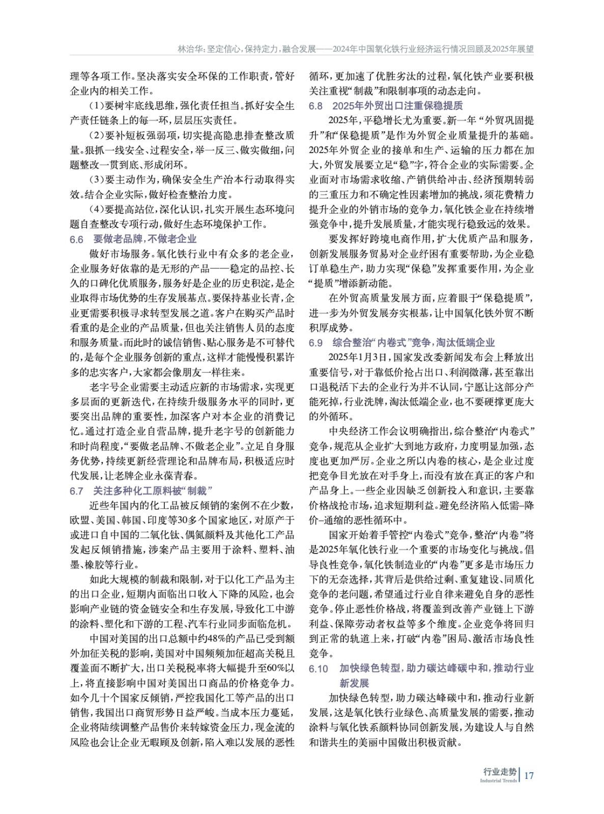 堅定信心,保持定力,融合發展——2024年中國氧化鐵行業經濟運行情況回顧及2025年展望