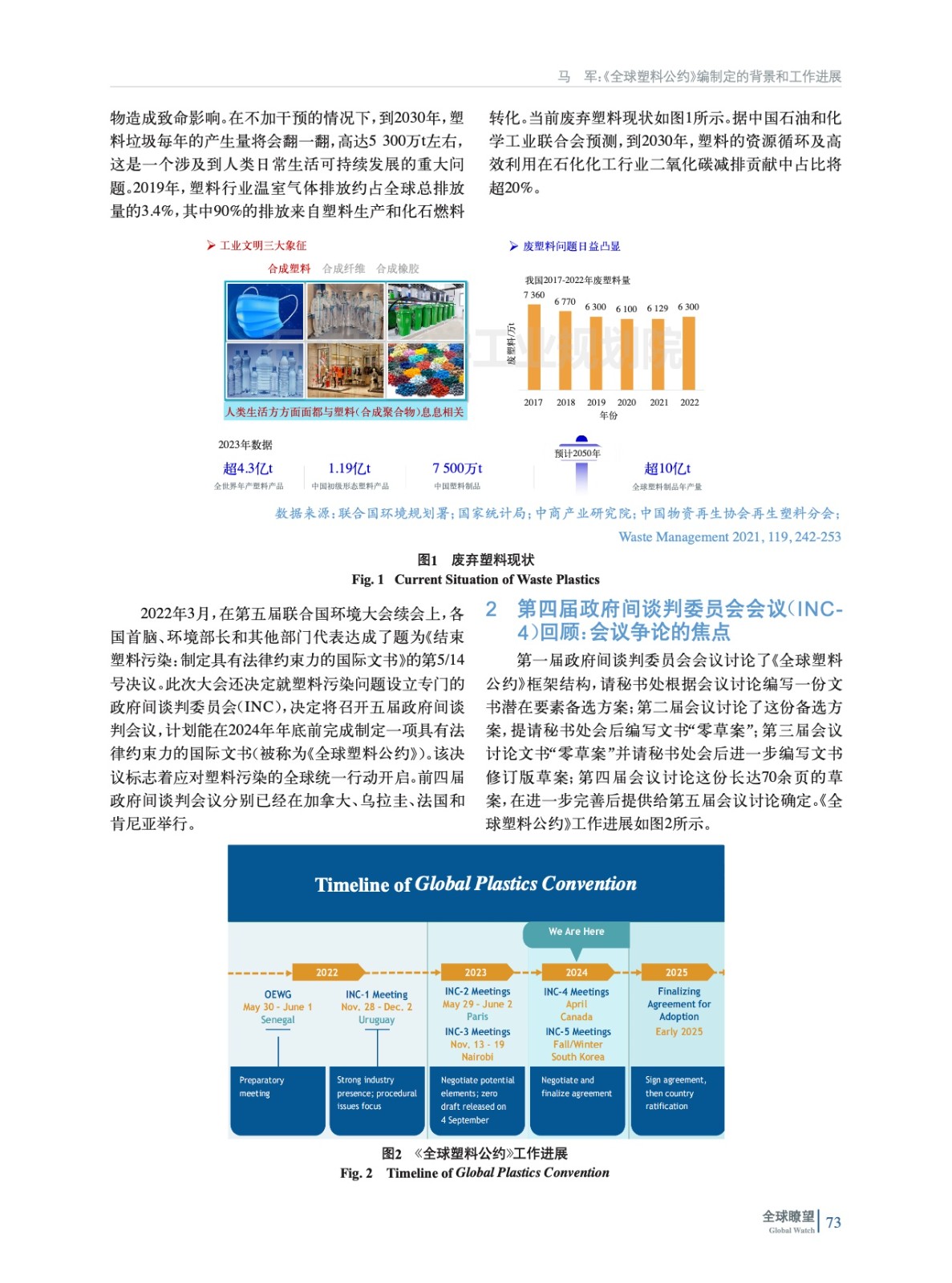 摘要:塑料是世界上最重要、應用最廣泛的材料之一。從工業生產到衣食住行,塑料制品的應用已深入人們生活的方方面面。然而全球每年產生的廢棄塑料約2 000萬t,而且還在逐年上升。針對這種情況,2022年,聯合國環境組織決定起草一份《全球塑料公約》,以支撐塑料行業可持續發展。本文介紹了歷次會議的進展和目前公約內容的焦點問題。在涂料行業許多產品的包裝材料都使用塑料,因此塑料包裝新的循環應用方式引起了涂料行業內廣泛的關注。