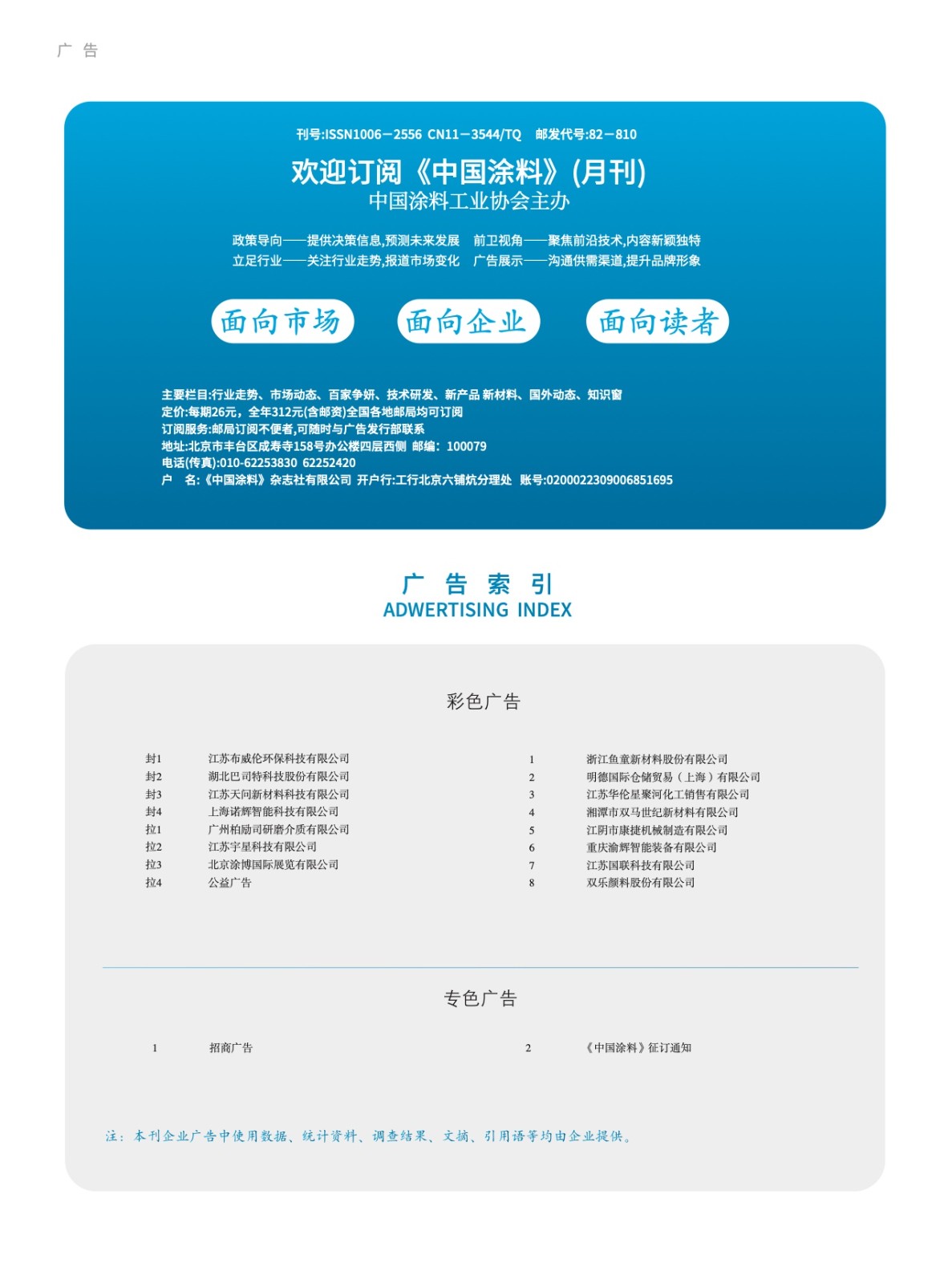 招商廣告、《中國涂料》征訂通知