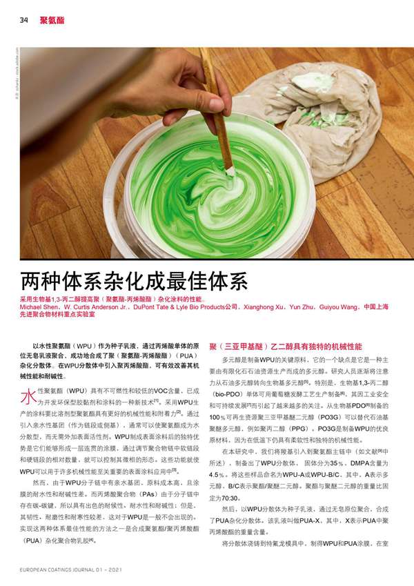 采用生物基1,3-丙二醇提高聚(聚氨酯-丙烯酸酯)雜化涂料的性能