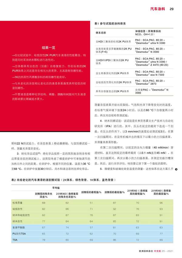 摘要:對(duì)95種汽車清漆體系進(jìn)行了干/濕刮擦試驗(yàn)(老化前后)和耐化學(xué)品試驗(yàn)。該基準(zhǔn)研究的試驗(yàn)揭示了各體系之間存在巨大的差異。