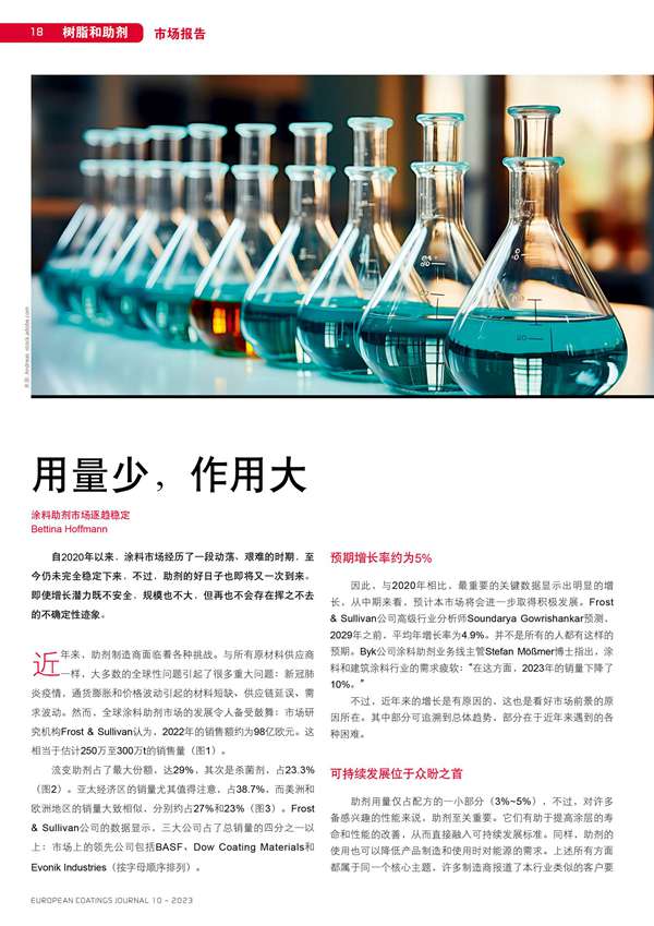 摘要:涂料助劑市場逐趨穩定