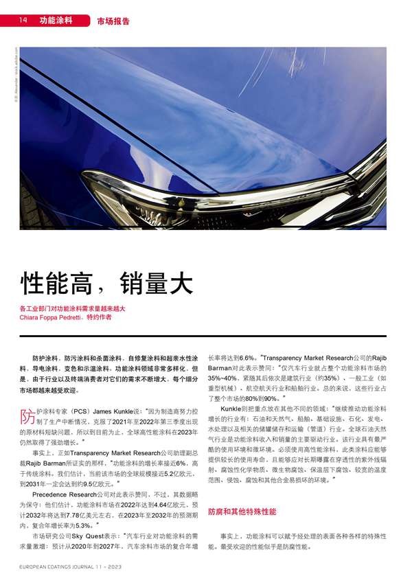 各工業(yè)部門對(duì)功能涂料需求量越來(lái)越大