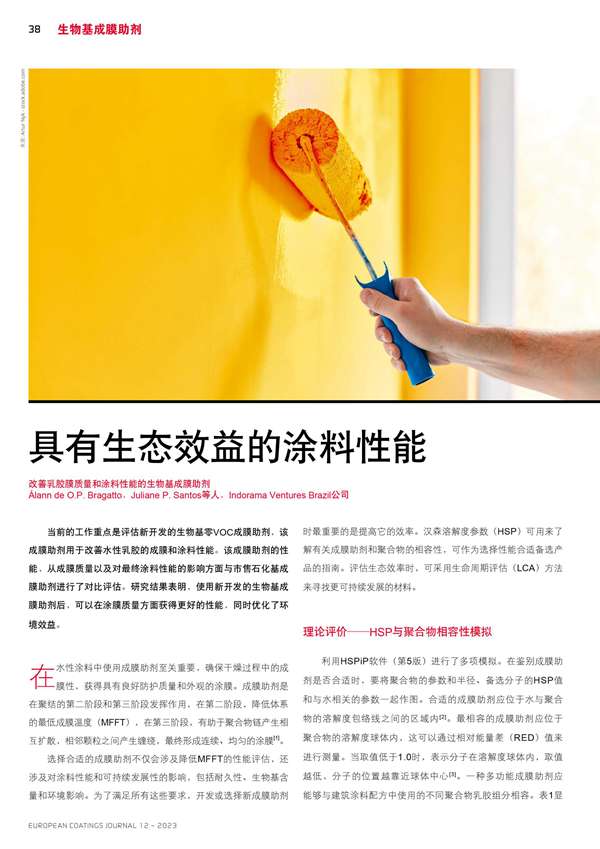 具有生態效益的涂料性能