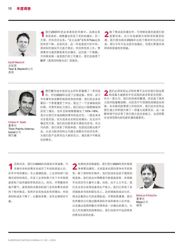 歐洲涂料生產商主要負責人的回顧和展望分享