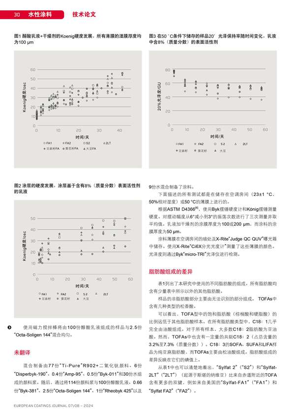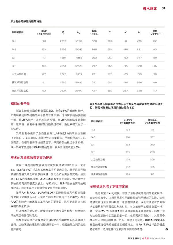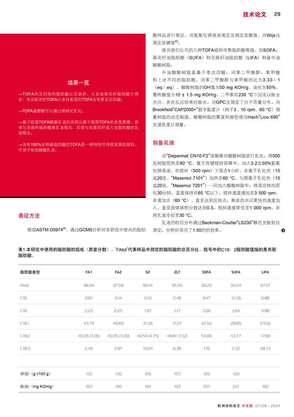 TOFA基醇酸乳液的涂層性能與替代脂肪酸的比較