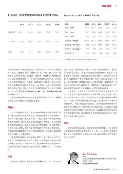 俄羅斯涂料市場:2016年及預(yù)測