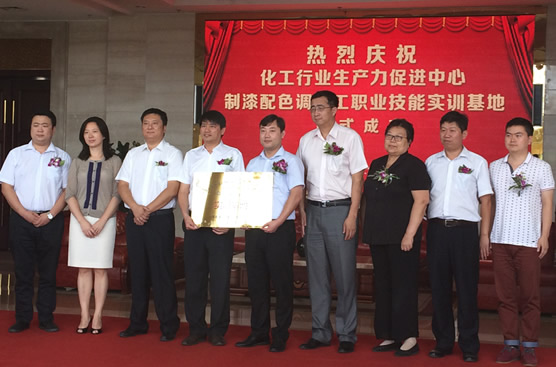 8月28日,化工行業生產力促進中心制漆配色調制工職業技能實訓基地揭牌儀式在晨陽水漆總部隆重舉行。中國石油和化學工業聯合會副秘書長、化工行業生產力促進中心主任胡遷林,化工職業技能鑒定指導中心主任沈磊,化工專家郭鴻霖,徐水區副區長張燕偉等應邀出席,化工行業生產力促進中心主任胡遷林為基地授牌。