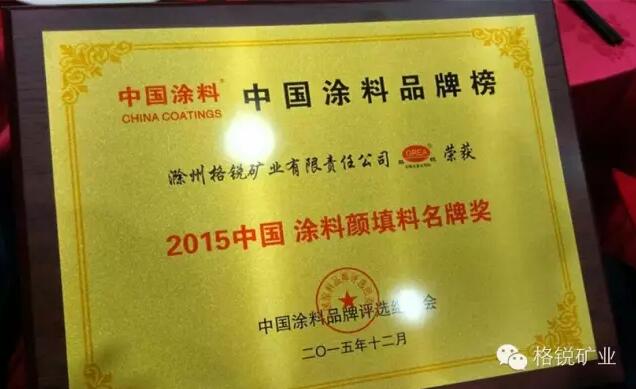 格銳礦業(yè)榮獲"2015年中國(guó)涂料顏填料名牌獎(jiǎng)"