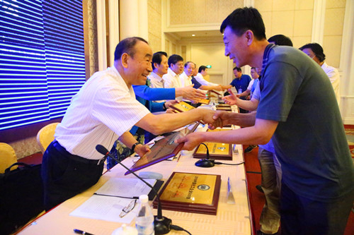 圖為李壽生為上榜企業(yè)頒發(fā)獎牌