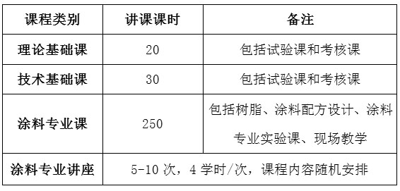 (一)理論基礎課、技術基礎課由中國涂料工業大學和上海工程技術大學涂料工業學院教師講授,涂料專業課由聘任業內專家講授。